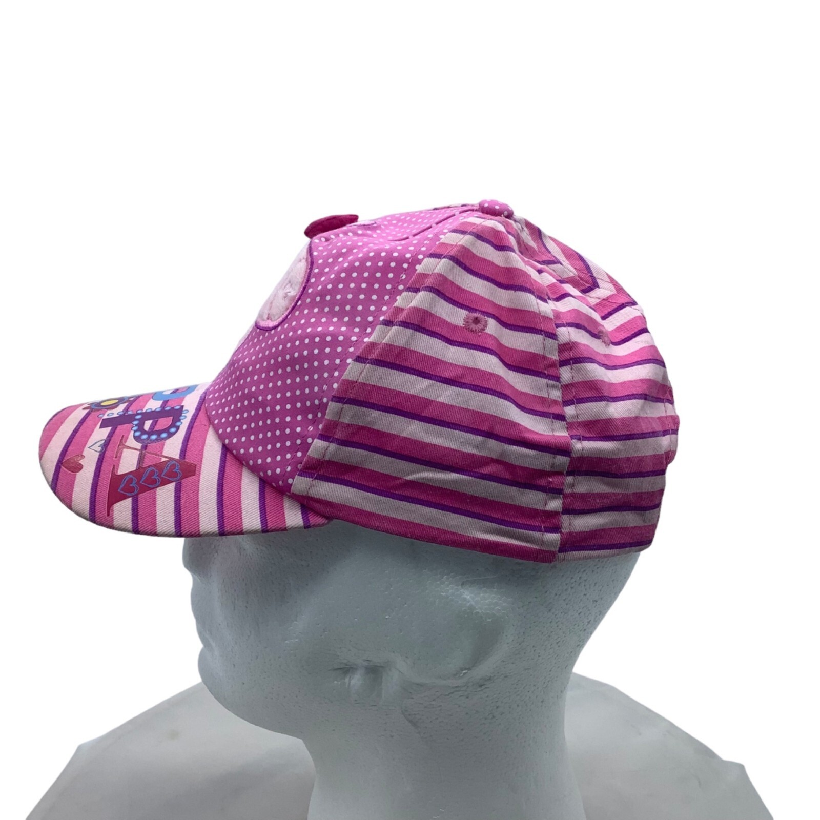 Vtg Peppa Pig Baseball Cap Hat Girl Adjustable Size Pink Stripes Polka Dot Bow