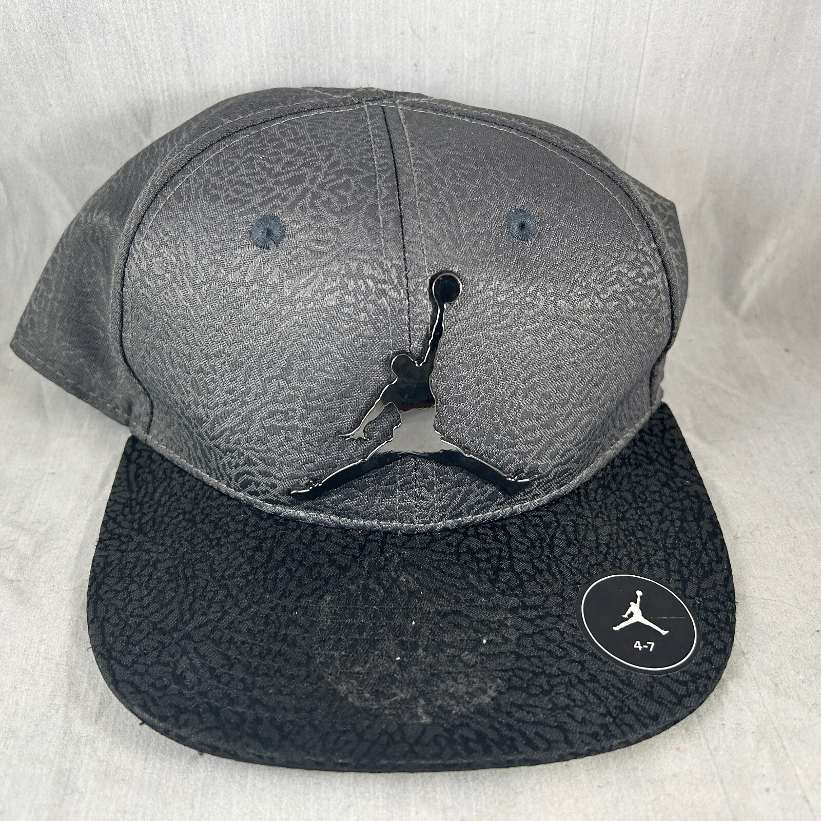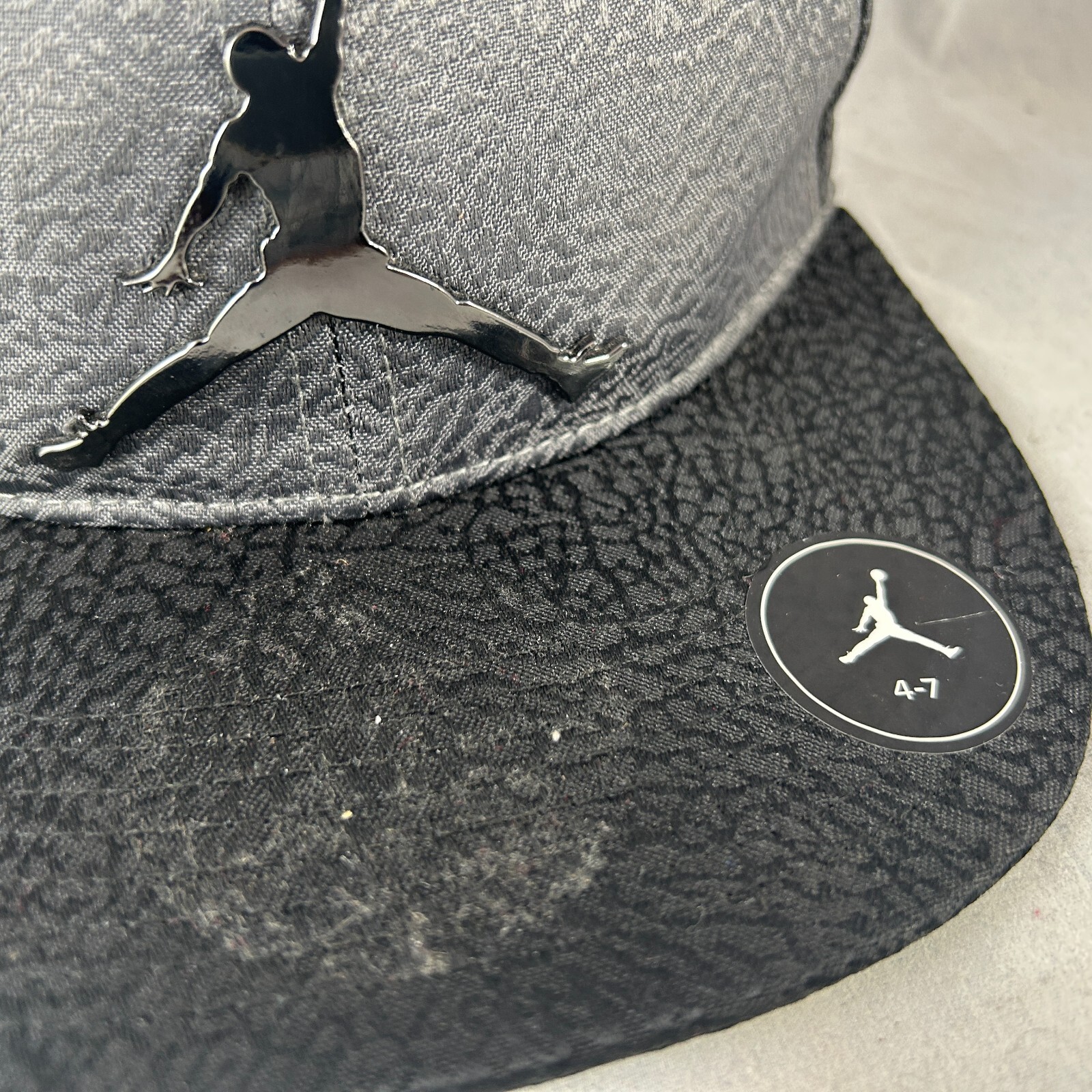 • JUMPMAN LOGO MICHAEL JORDAN GREY TEXTURED BLACK BILL YOUTH 4-7 SNAPBACK HAT CAP