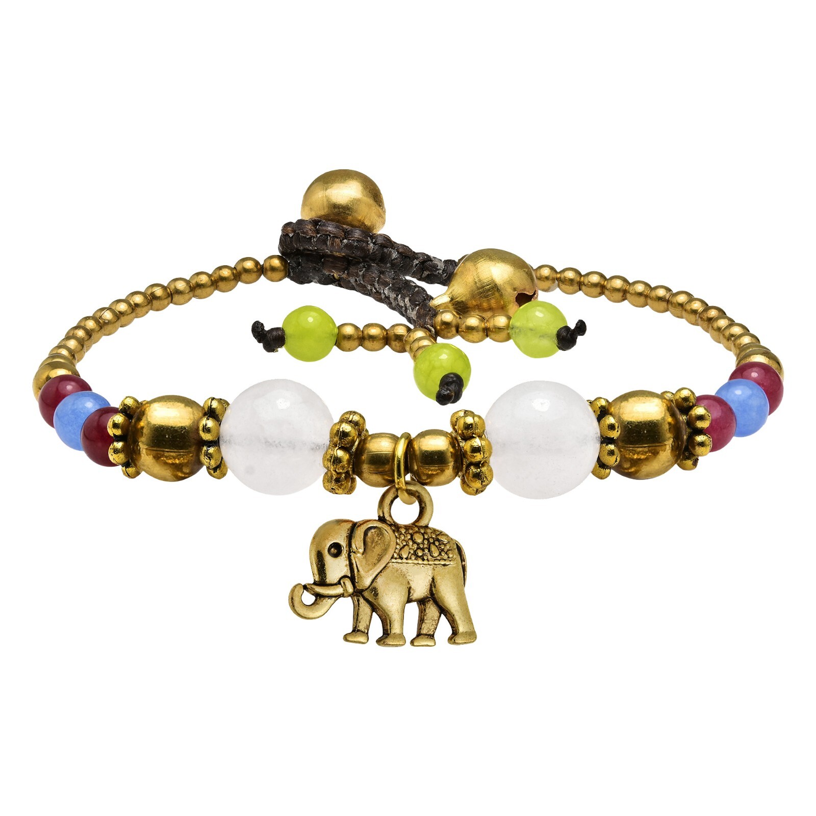 Boho Chic Colorful Stone Brass Bead Elephant Charm Bracelet