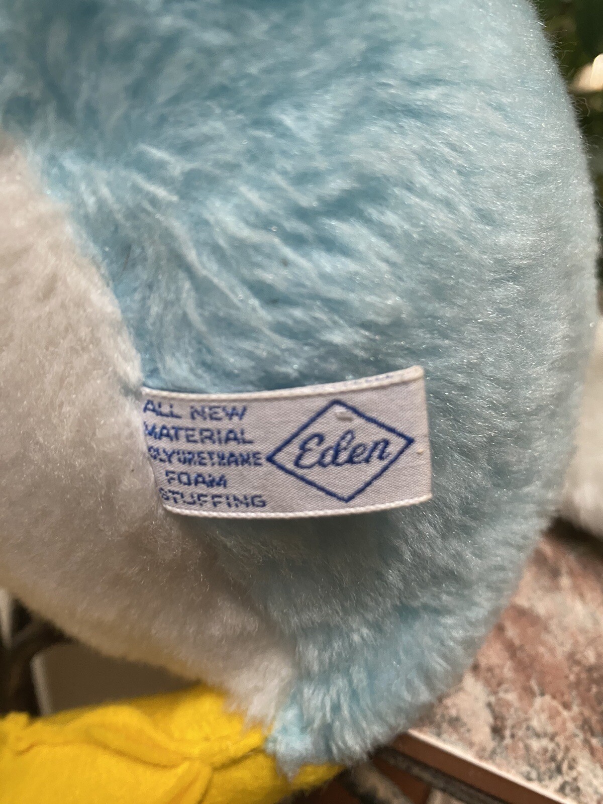 Vintage Eden Plush Pale Blue Duck w/ Collar n Dotted Bow Tie Vintage Rare HTF