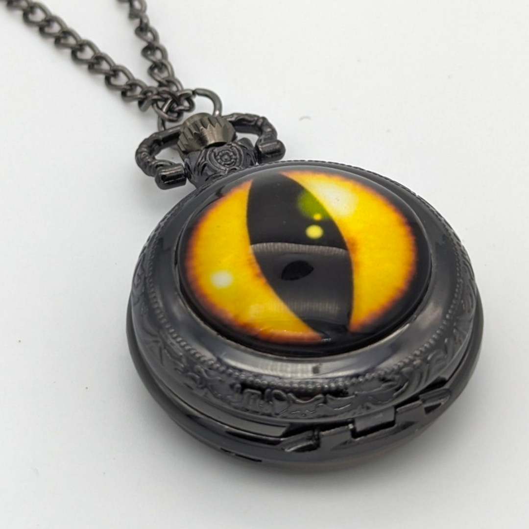 Dragon Eye Pendant Watch NEW Gift Cat Orange Yellow Necklace Pocket Vintage