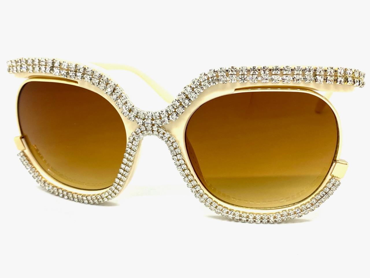 Oversized Classic Vintage Retro Style SUNGLASSES Large Square Bling Cream Frame