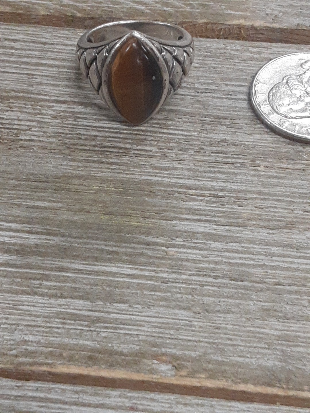 как выглядит Antique Sterling Silver with Tiger Eye Ring sz 9 фото