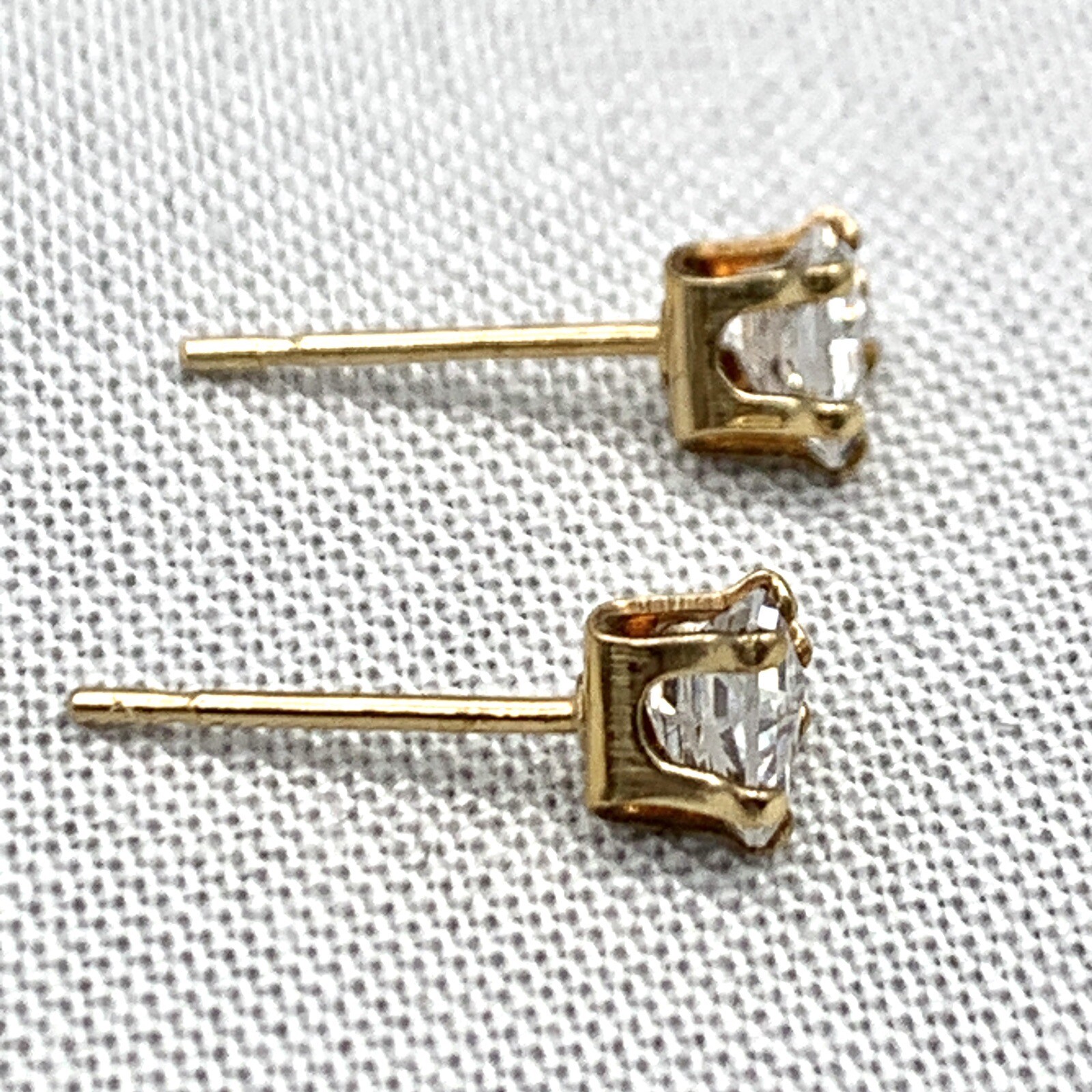 0.5 CTW Triangle Cut CZ Yellow Gold Filled Earrings 4 mm Child or Adult