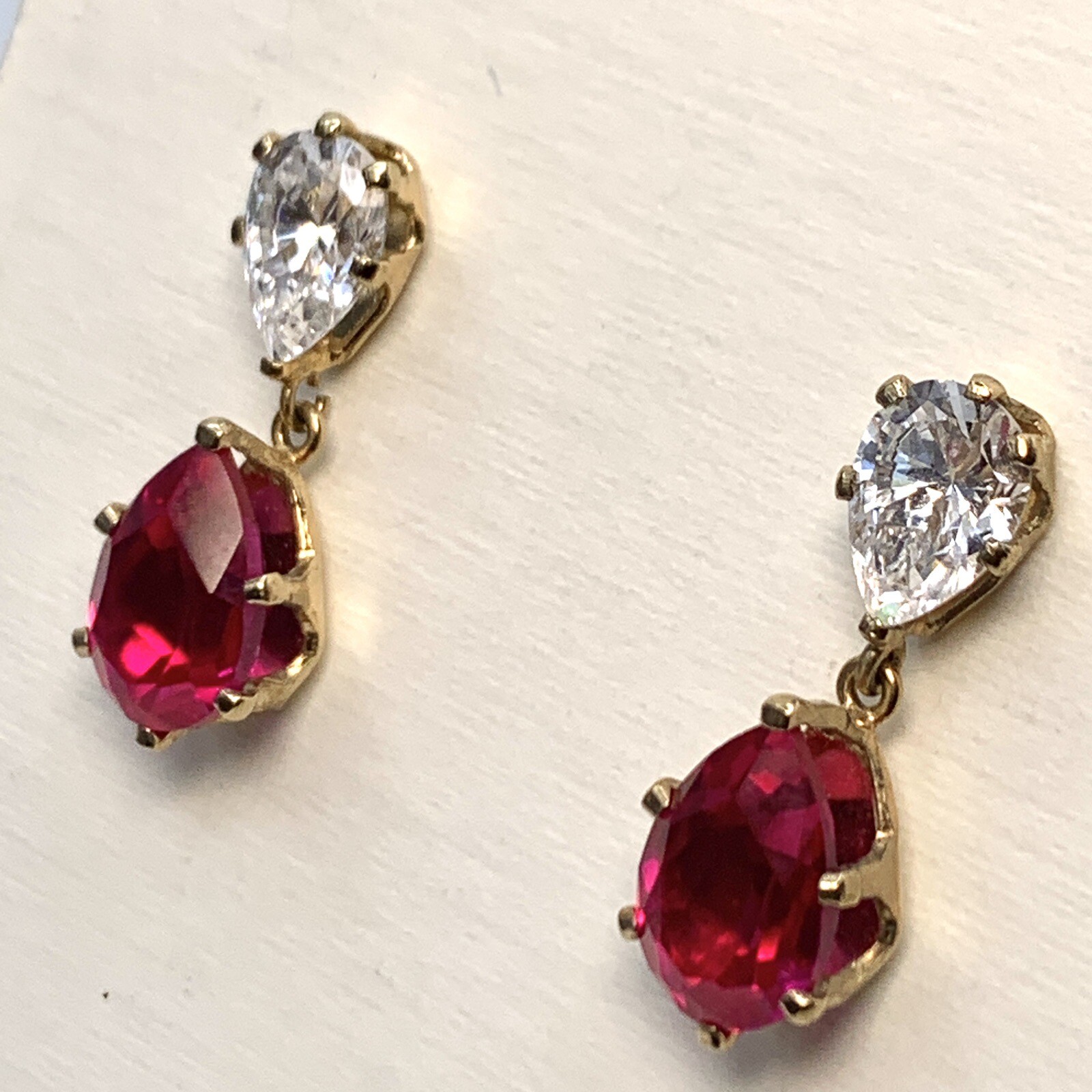 6 CTW Pear CZ Drop Earrings Pear Red CZ Accents Yellow Gold Filled