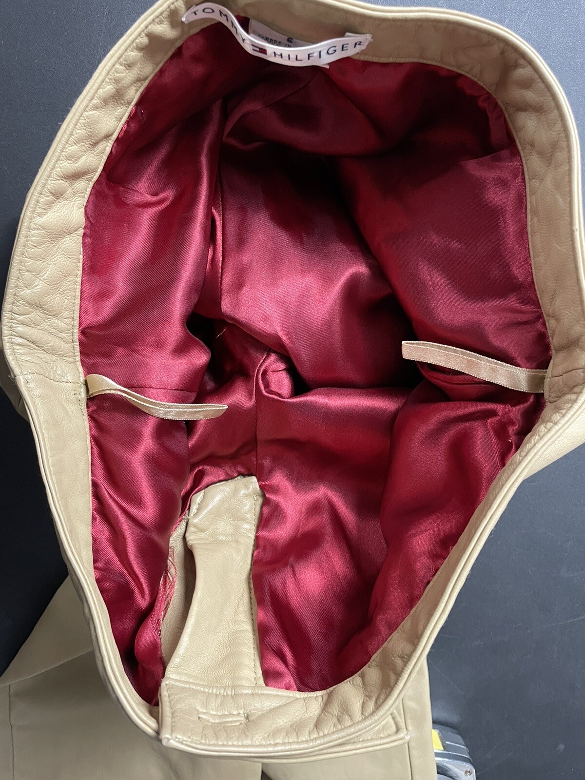 как выглядит Tommy Hilfiger Tan Brown Leather Pants Womens Size 6 Lined фото
