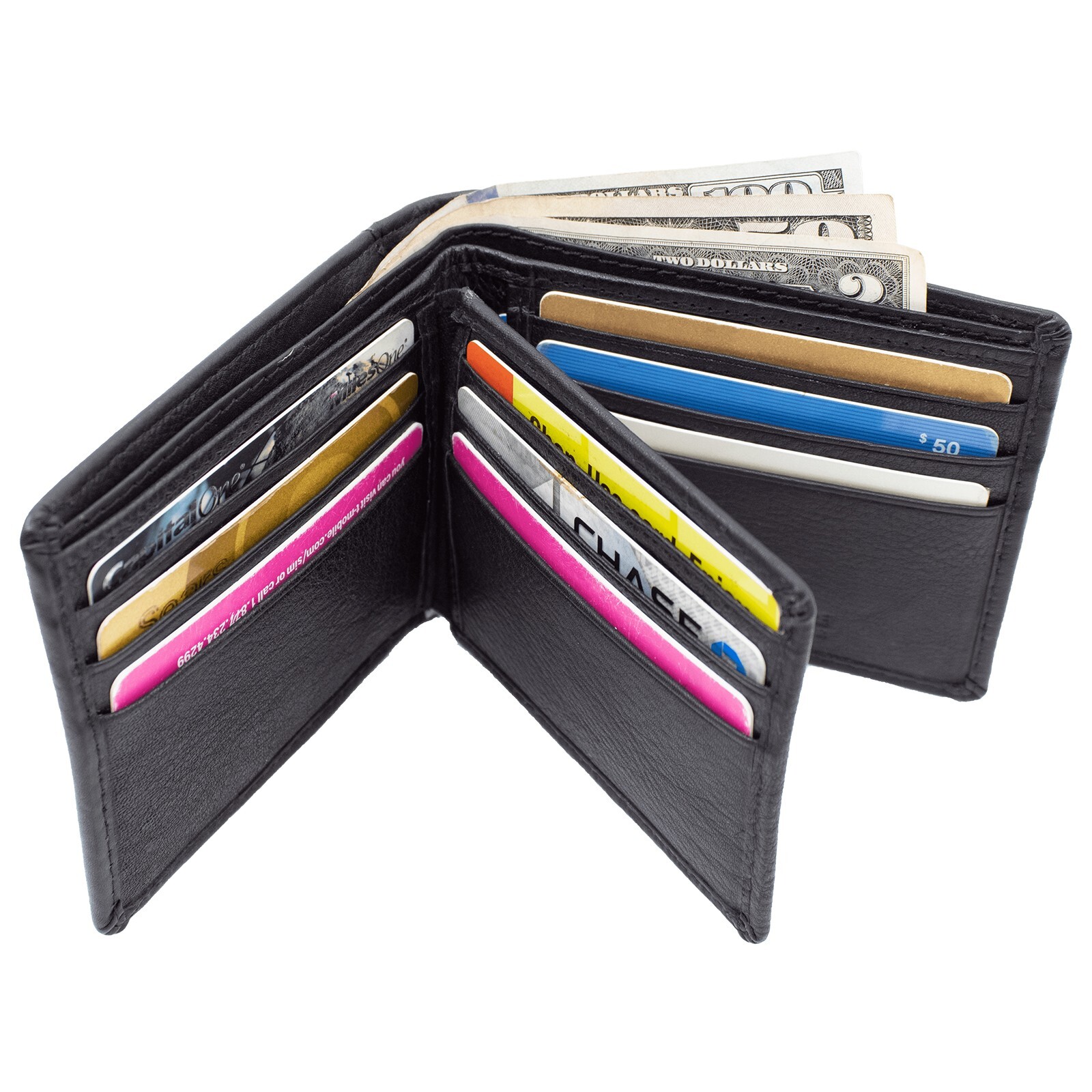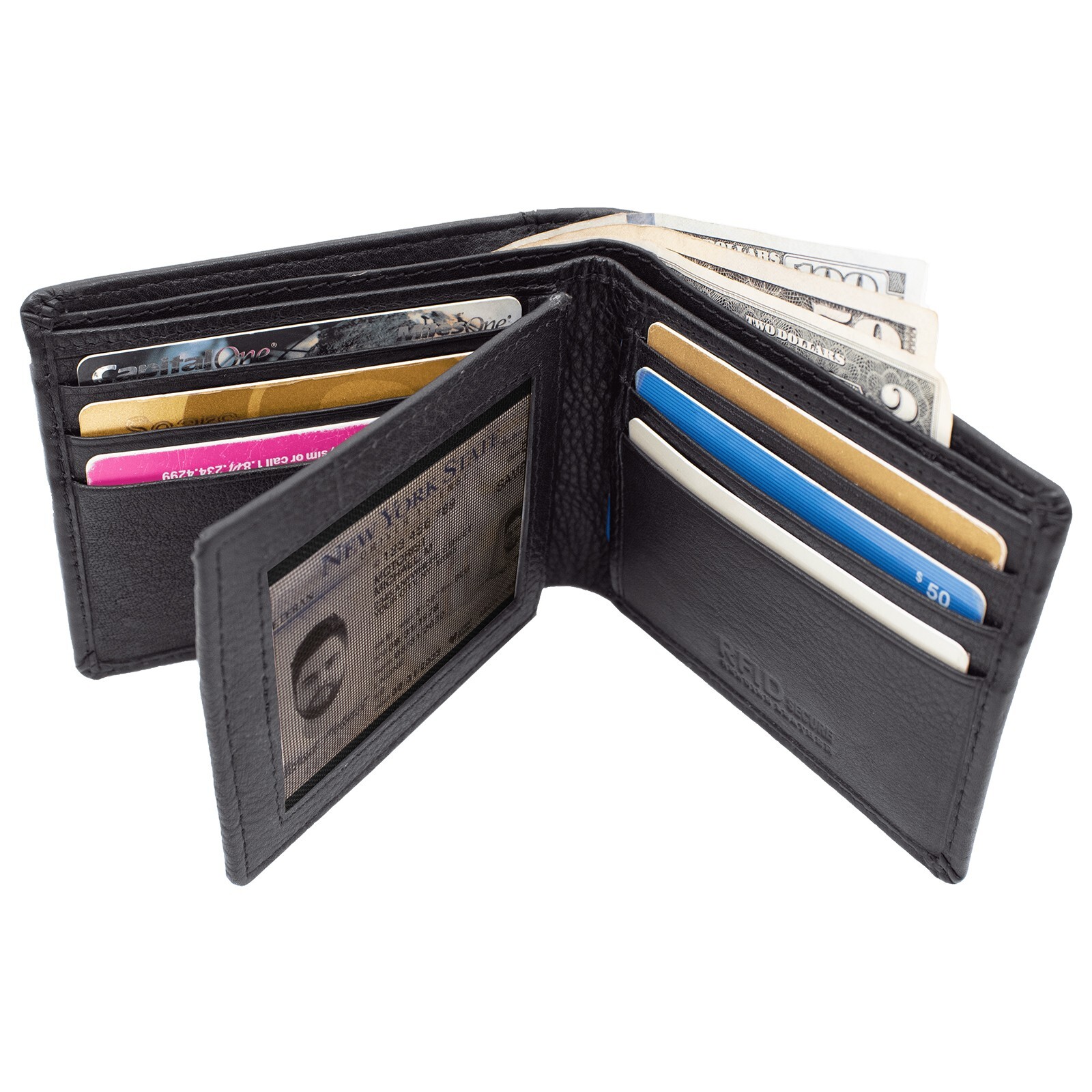 как выглядит Men s Genuine Leather RFID Blocking Wallet  Black Slim Bifold Wallet фото