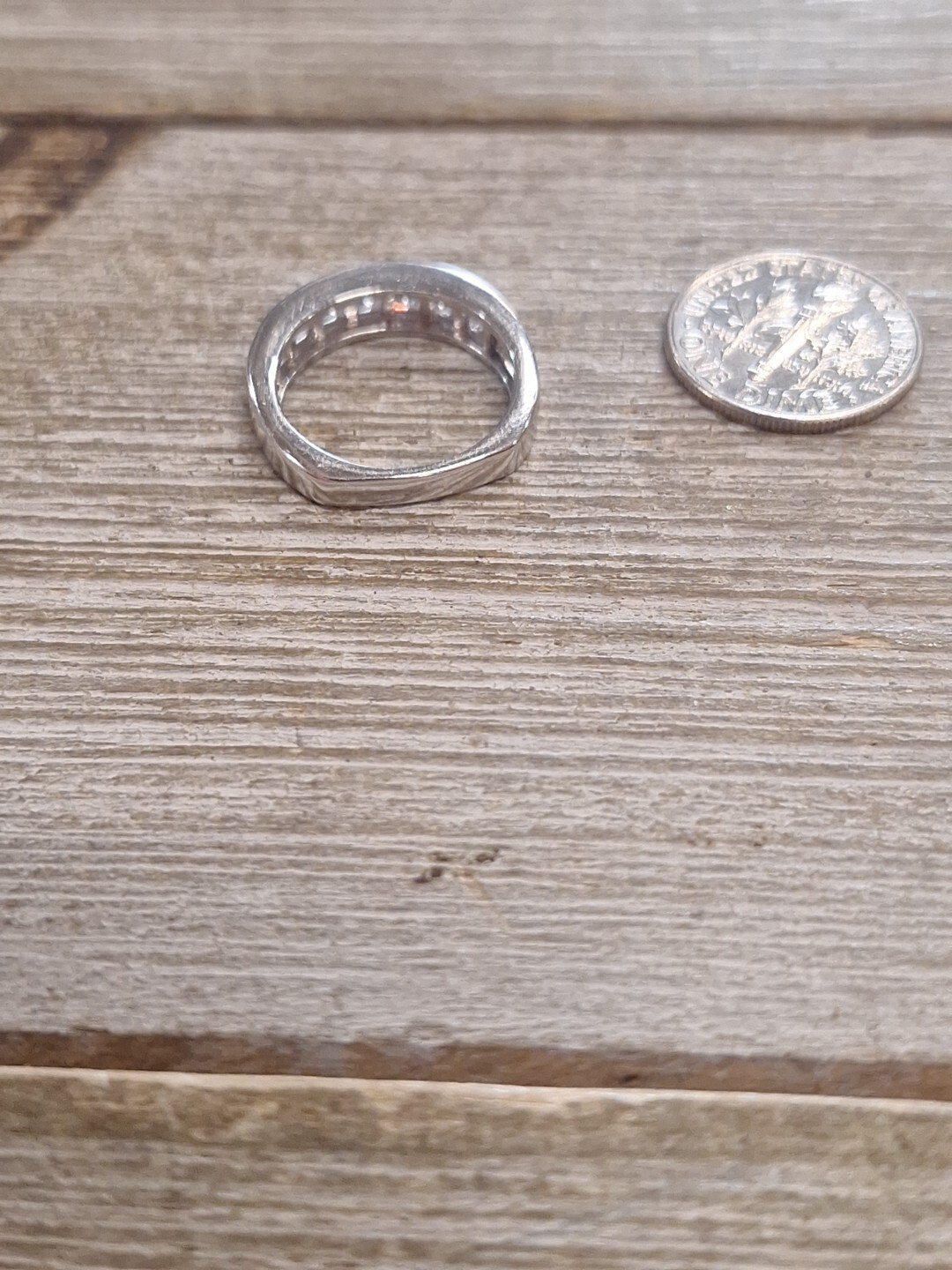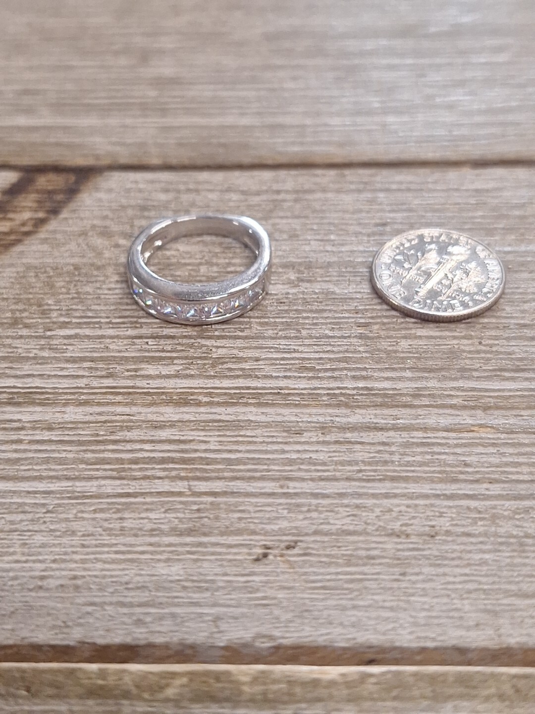 Sterling Silver with Cubic Zirconia Wedding Band and Engagement Rings Set sz 5
