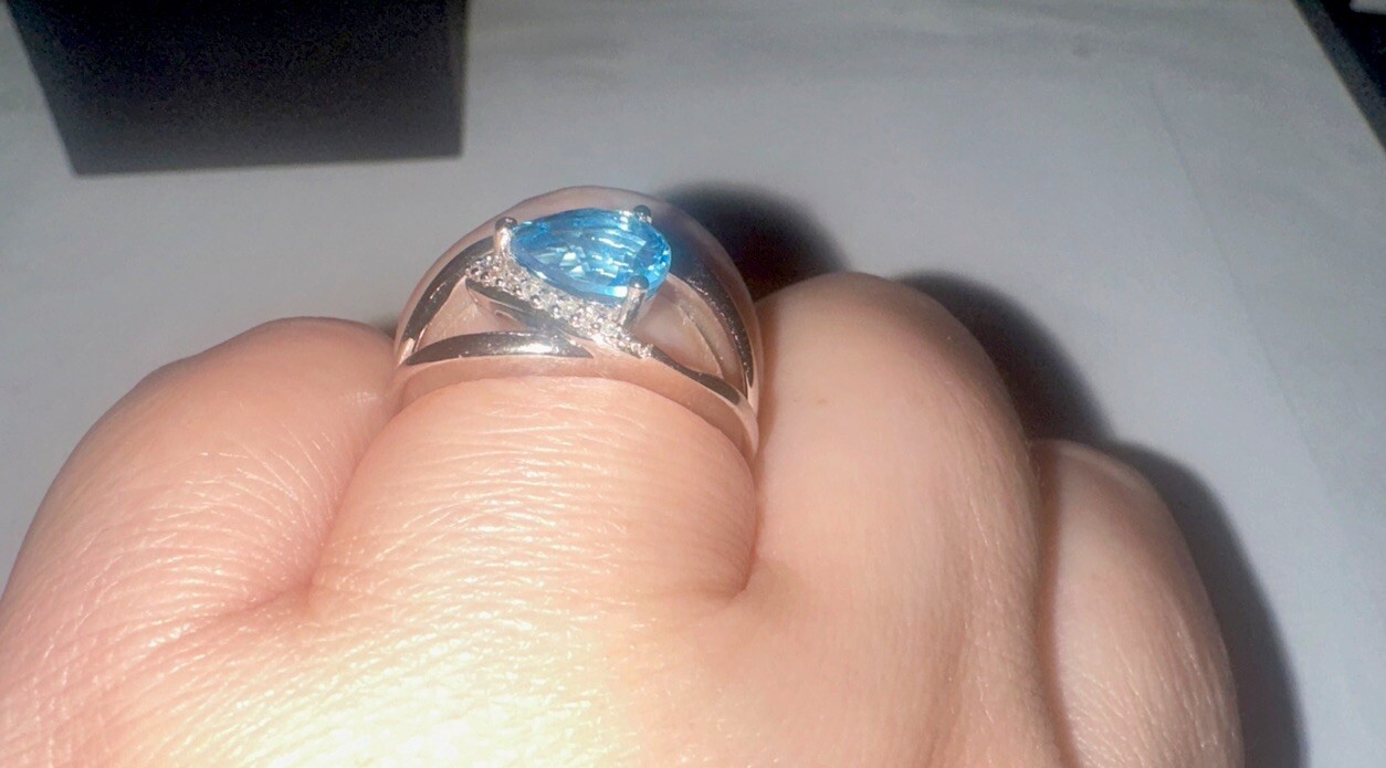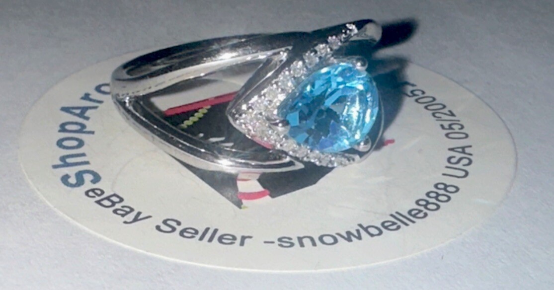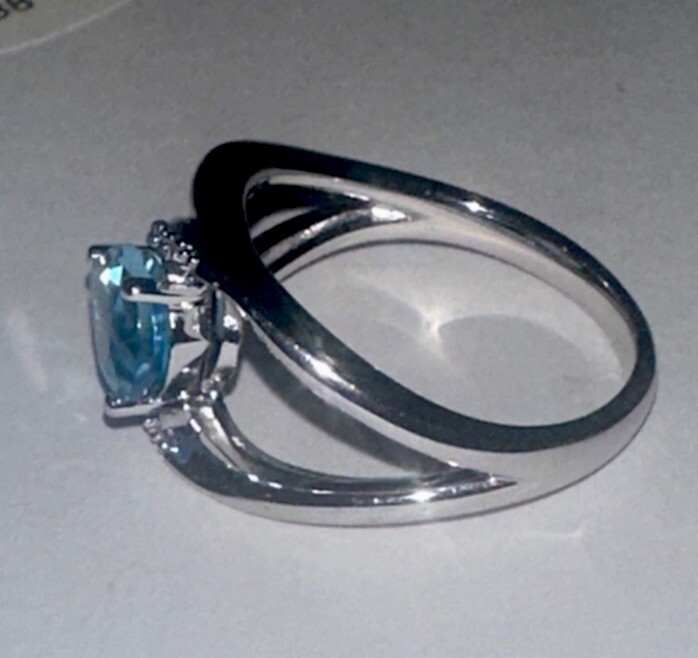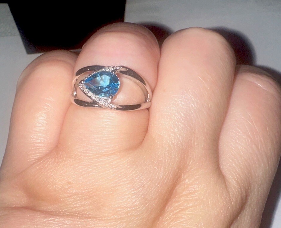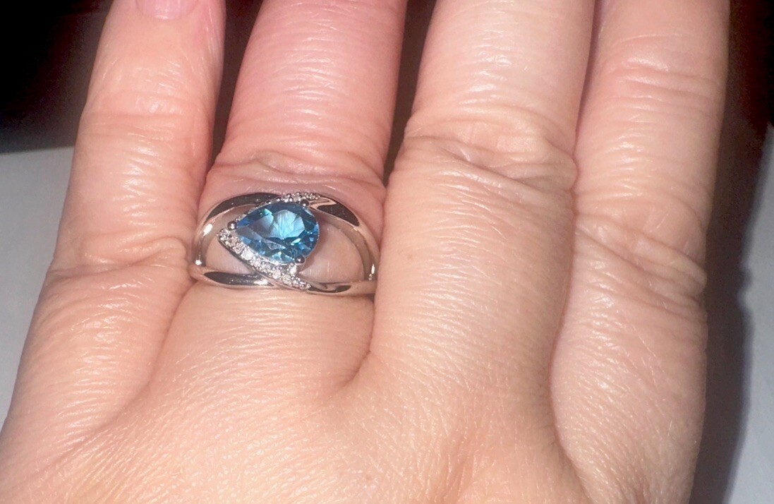 как выглядит SOLID 925 STERLING Silver Pear Shape Swiss Blue Topaz Diamond Ring 4.37GMS SZE 7 фото