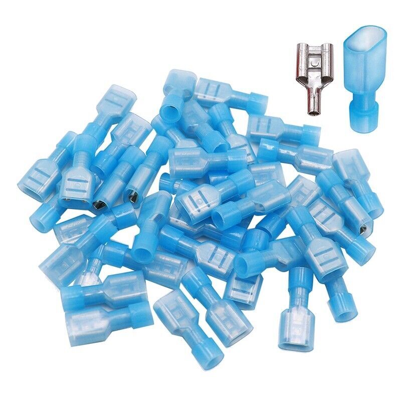 100PCS Female Insulated Wire Spade Terminals Crimp Connectors 16-14 AWG Blue US