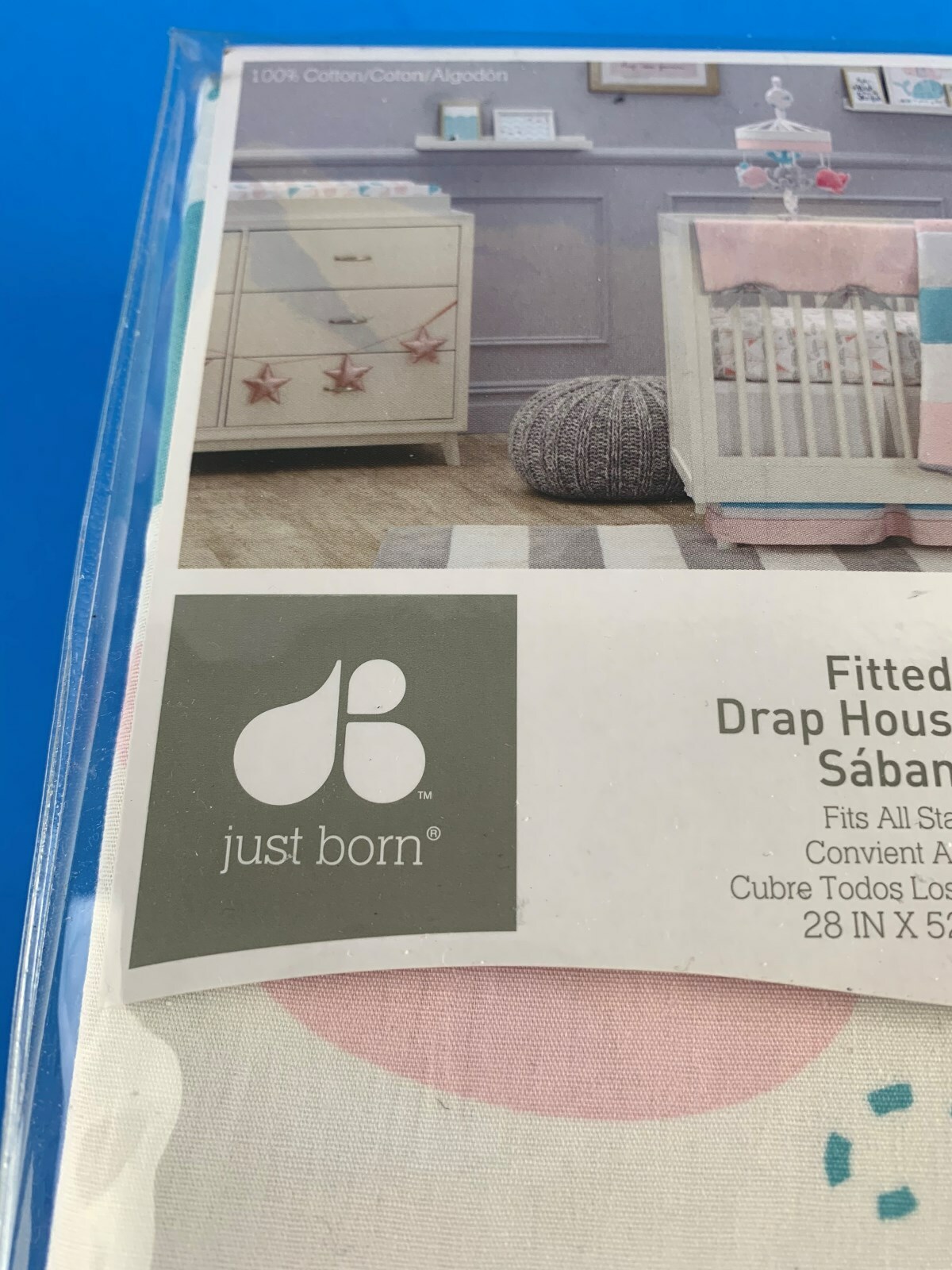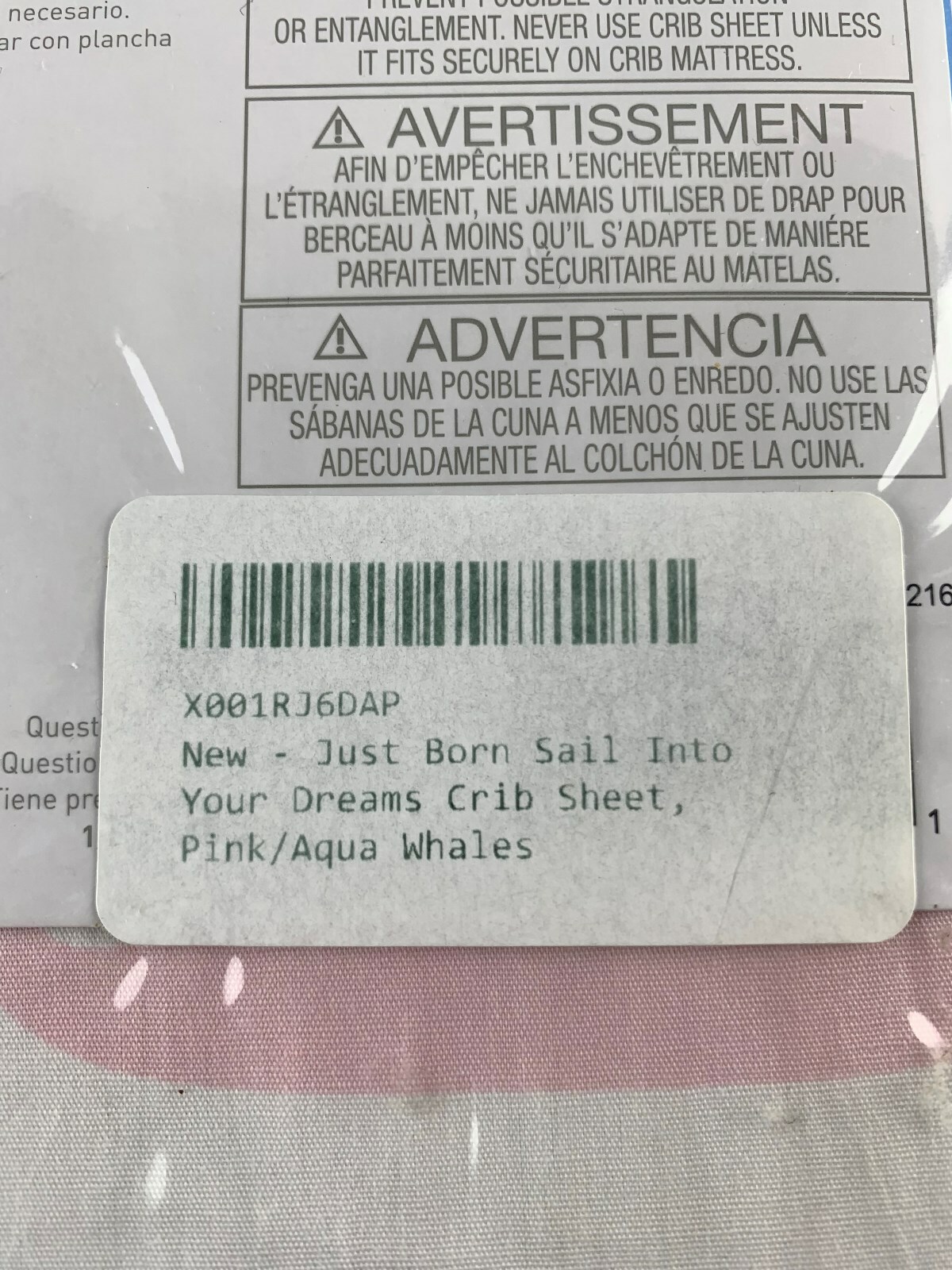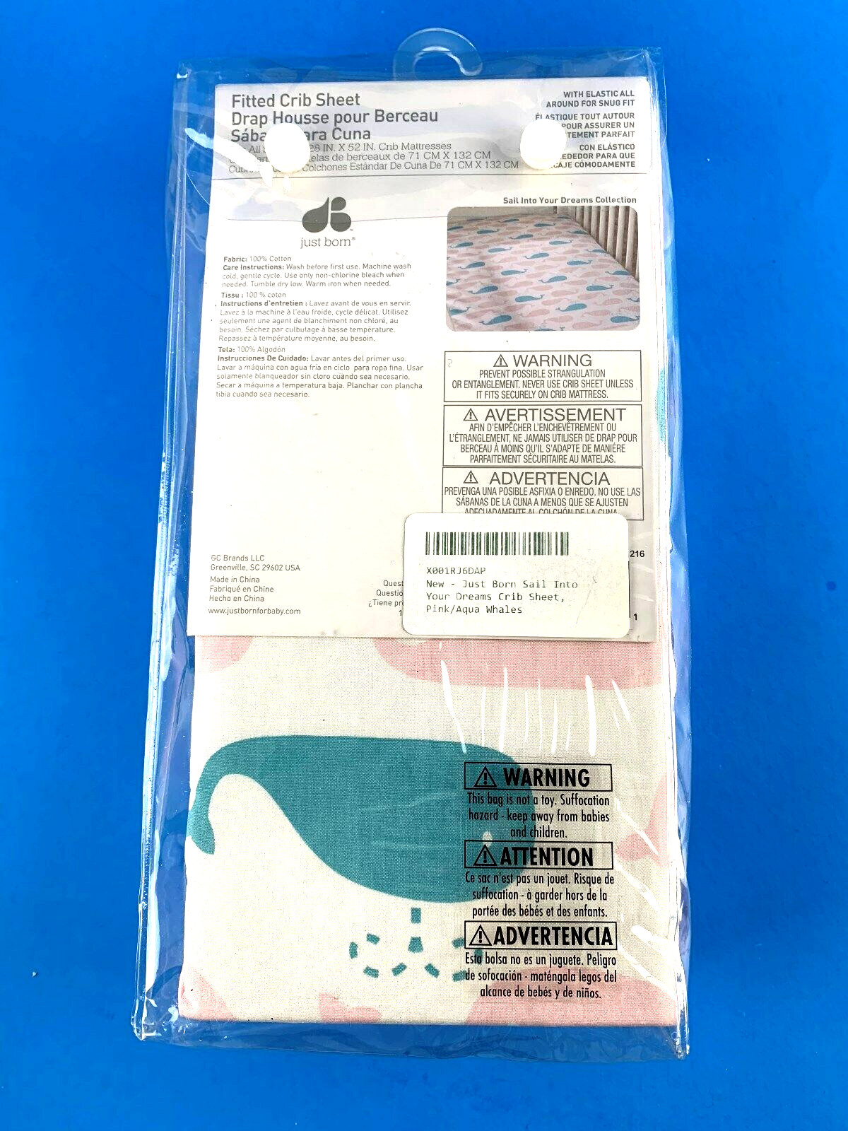Just Born FITTED 100 COTTON CRIB SHEET Sail Into Your Dreams Pink Aqua WHALES