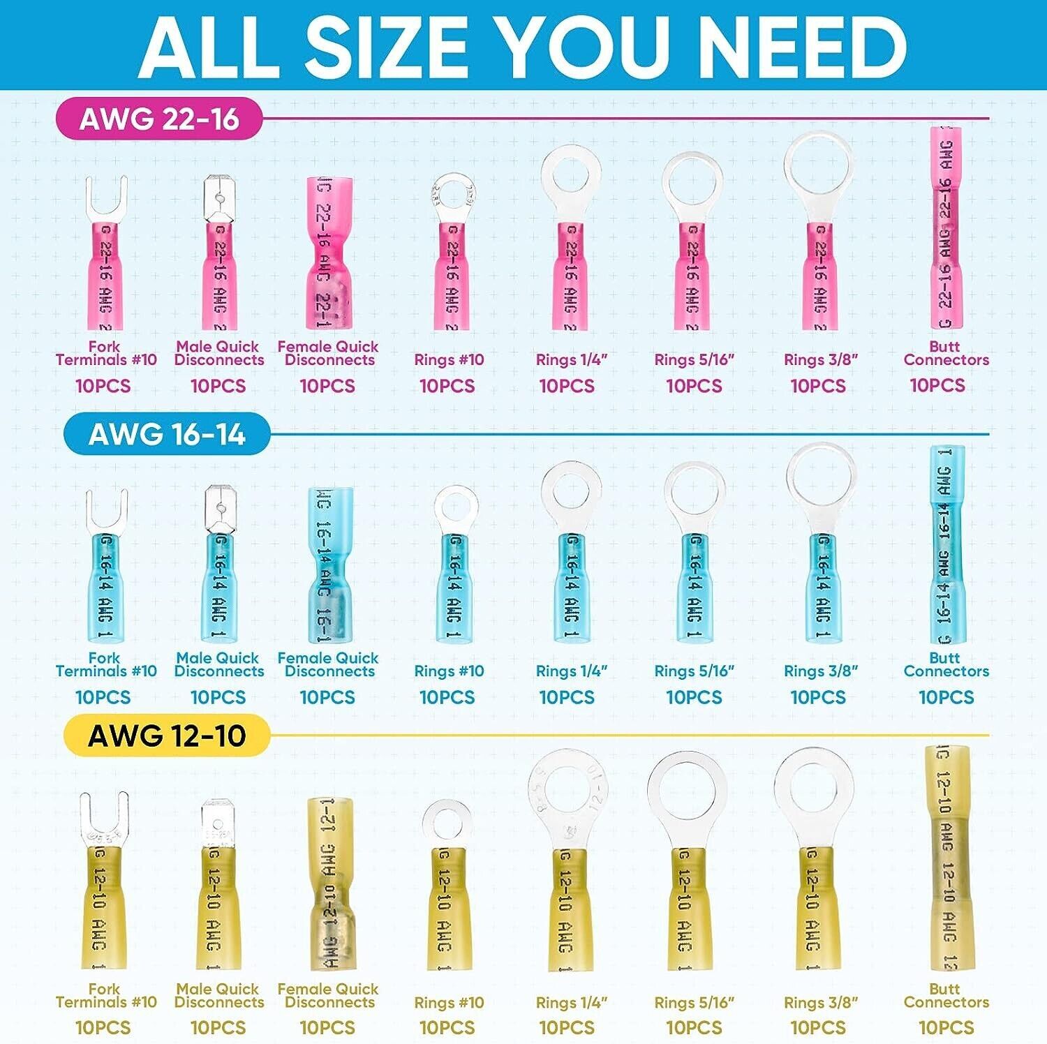 240/500 Heat Shrink Wire Connectors Electrical Crimp Marine Automotive Terminals