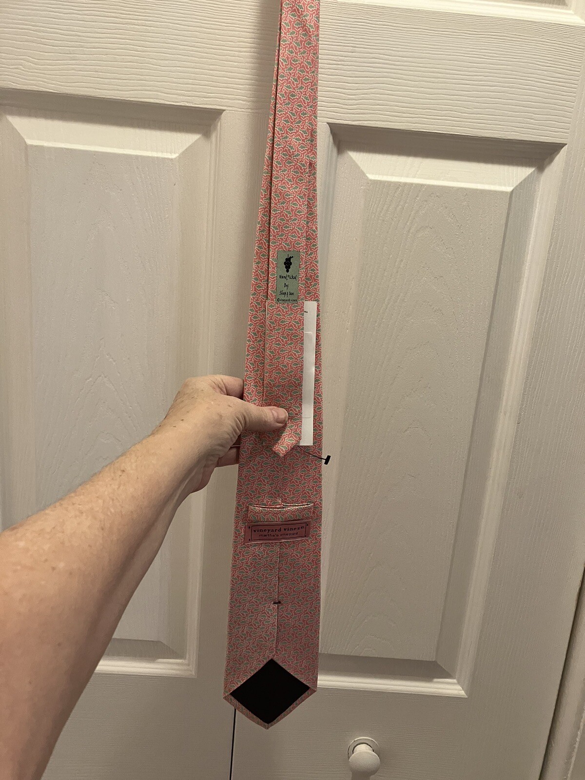 как выглядит Vineyard Vines Pink Green Shark Mens Tie 100 Silk Coastal Preppy фото