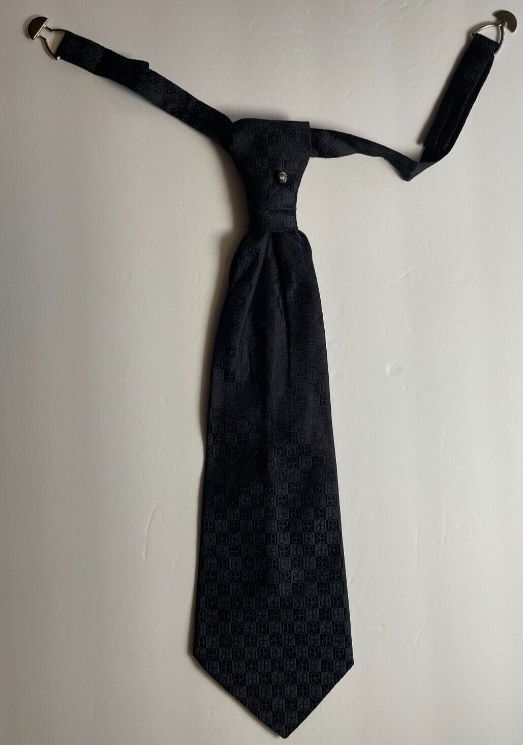 как выглядит Solid Black BALESTRA Logo Pre Tied Silk Ascot Cravat Plastron Wedding Tie Italy фото