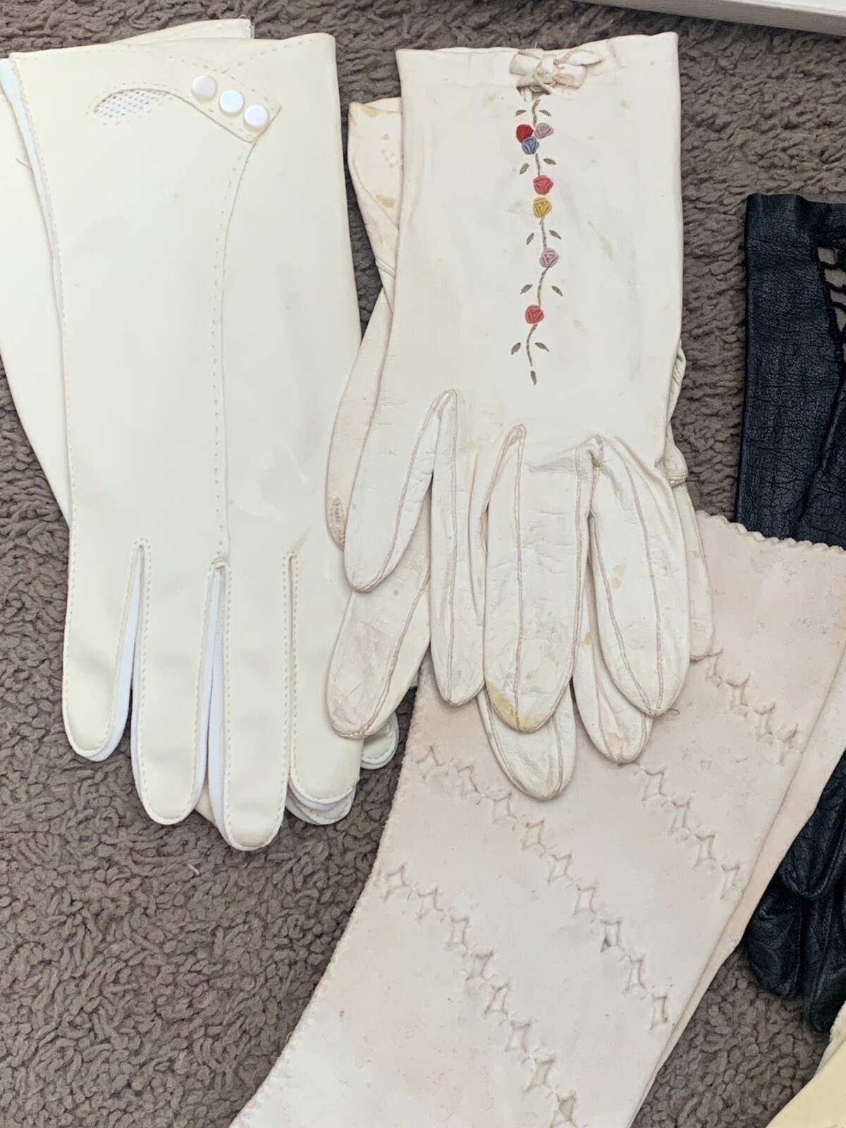 Vintage Glove LOT of 7 Leather Cotton Embroided White Black Multi Size Style