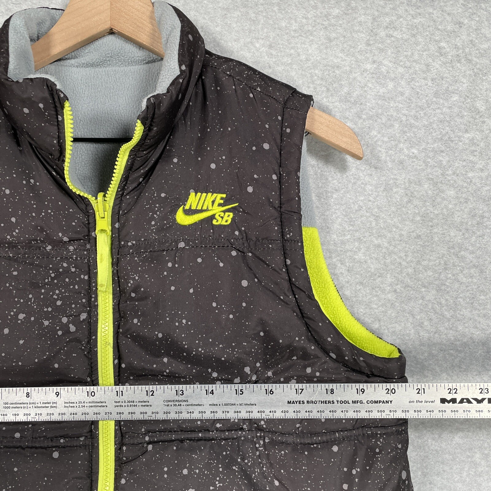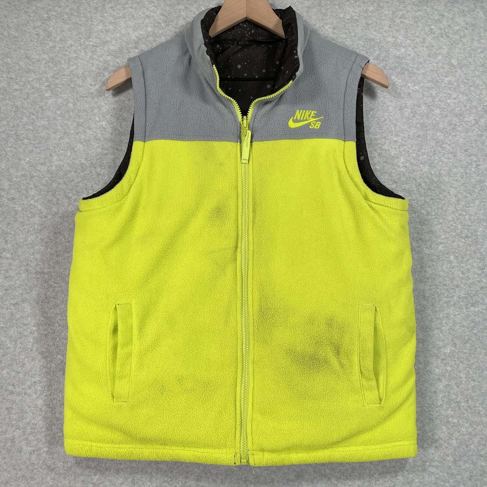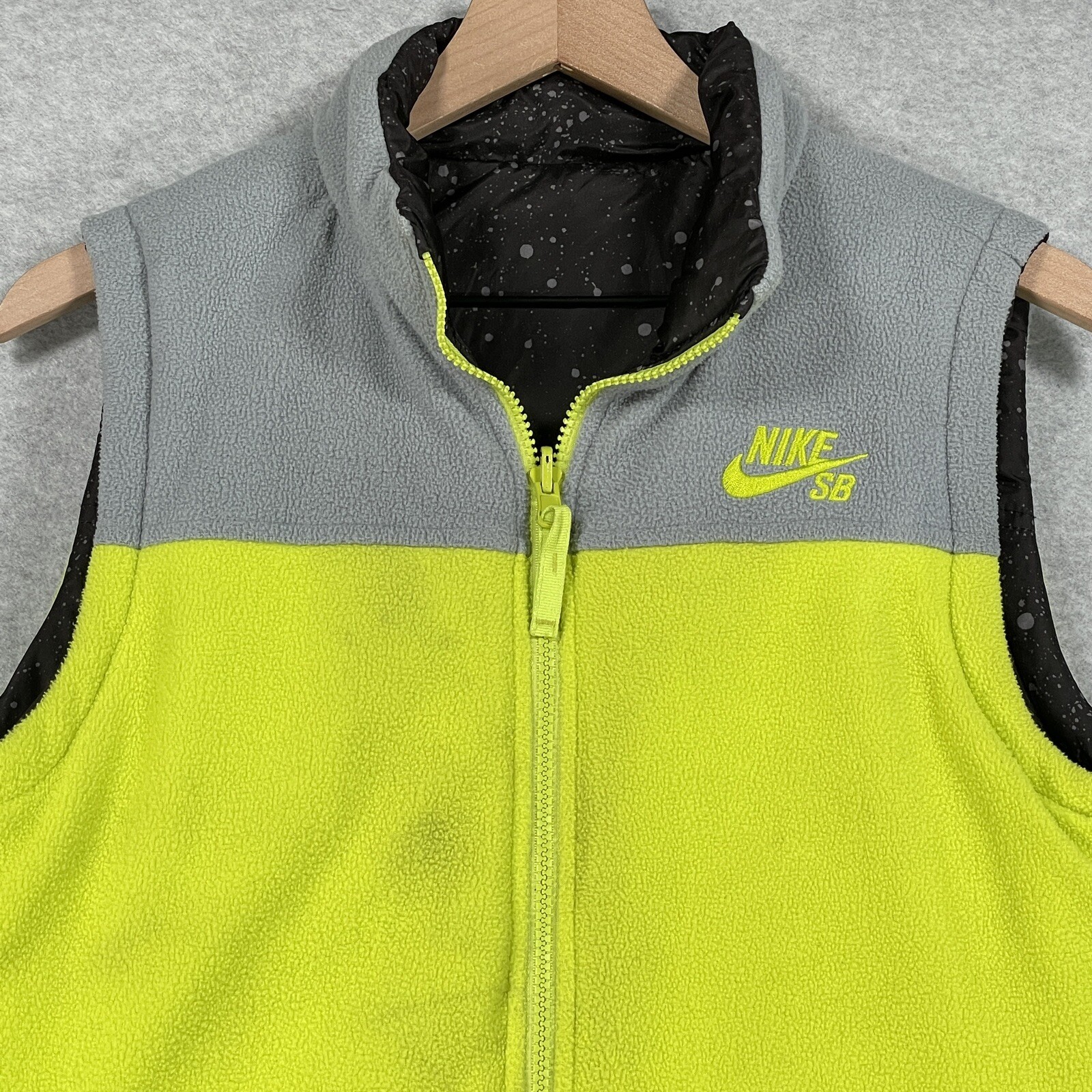 Nike SB Reversible Vest Youth L Black Yellow Fleece Full Zip Skateboarding