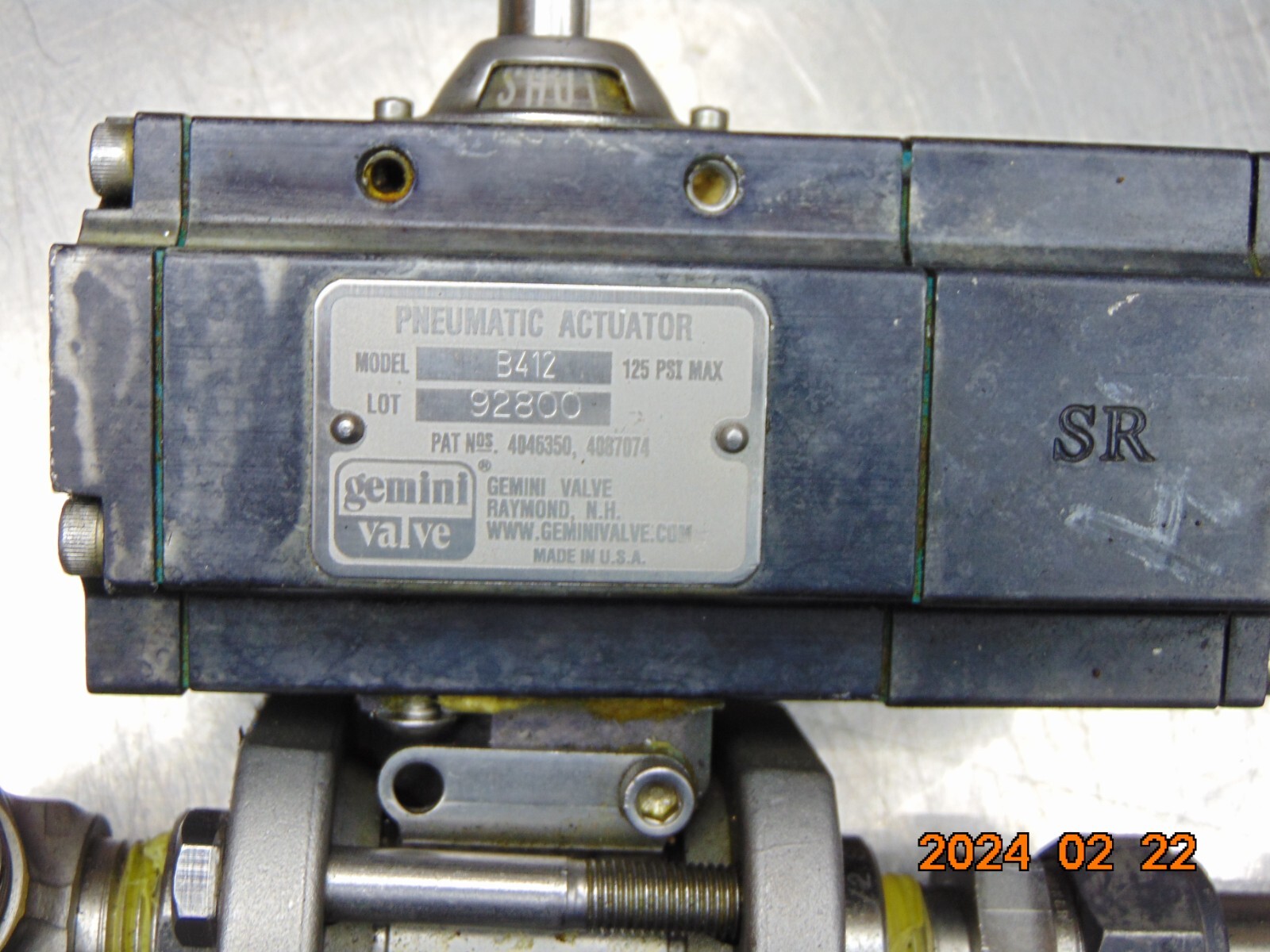 1 GEMINI VALVE B412 VALVE 1000 PSI CWP STAINLESS 1/2", PNEUMATIC ACTUATOR