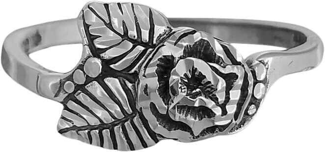 Sterling Silver Diamond Cut Lone Rose Ring