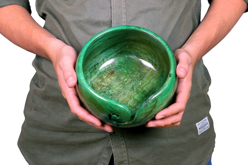 Wooden Yarn Bowl -Green Leaf Yarn Bowl for knitting Crocheting Large Yarn Bowl