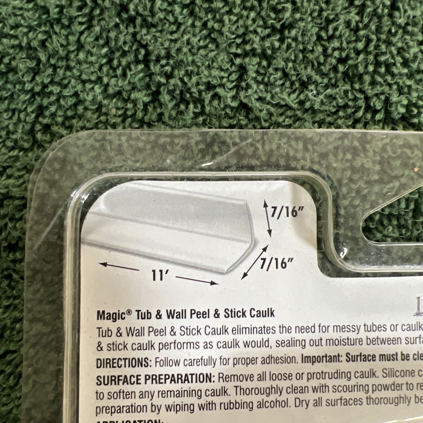 Magic Peel Stick Caulk Tub Wall WHITE 7/8 x 11' Bathtub Shower Water Seal