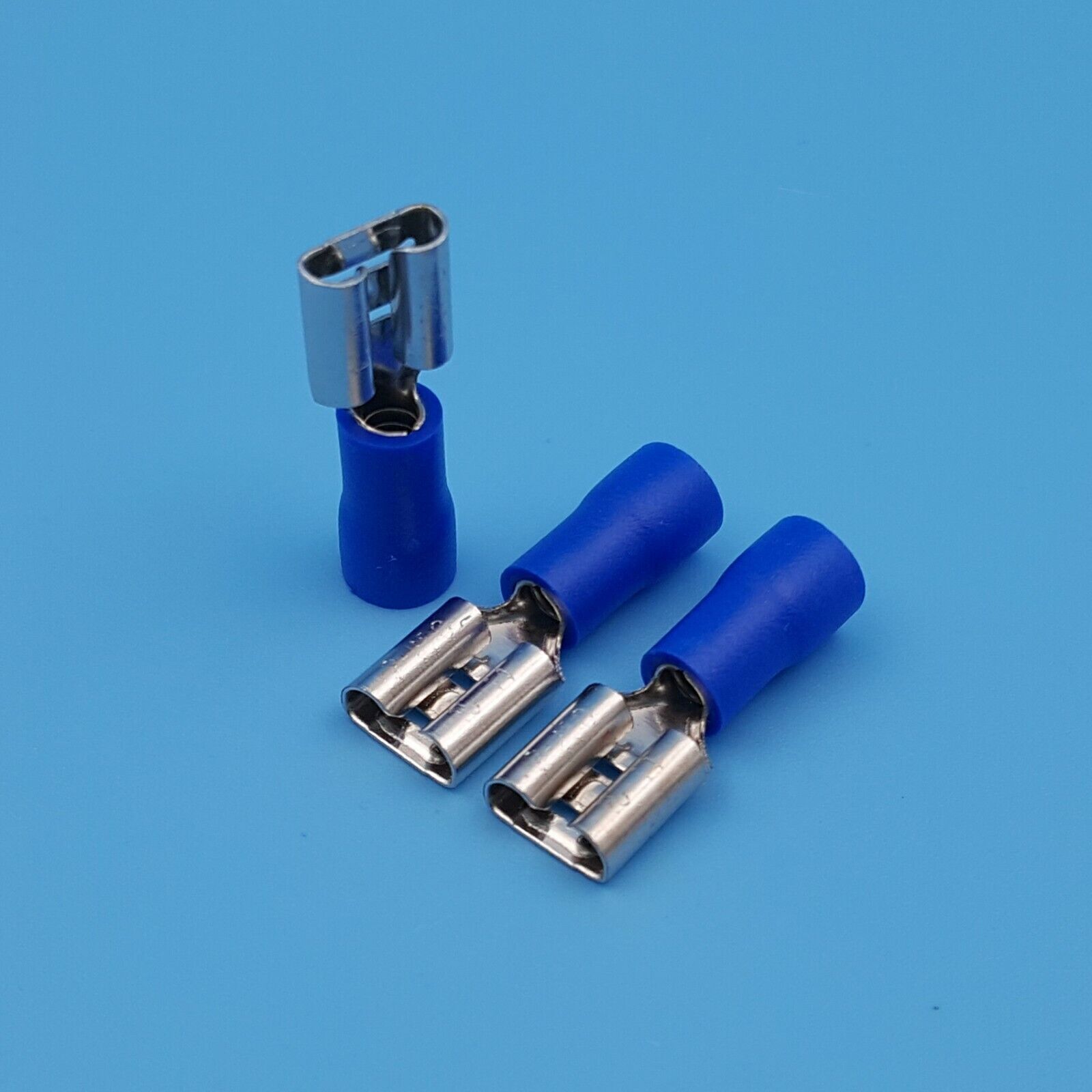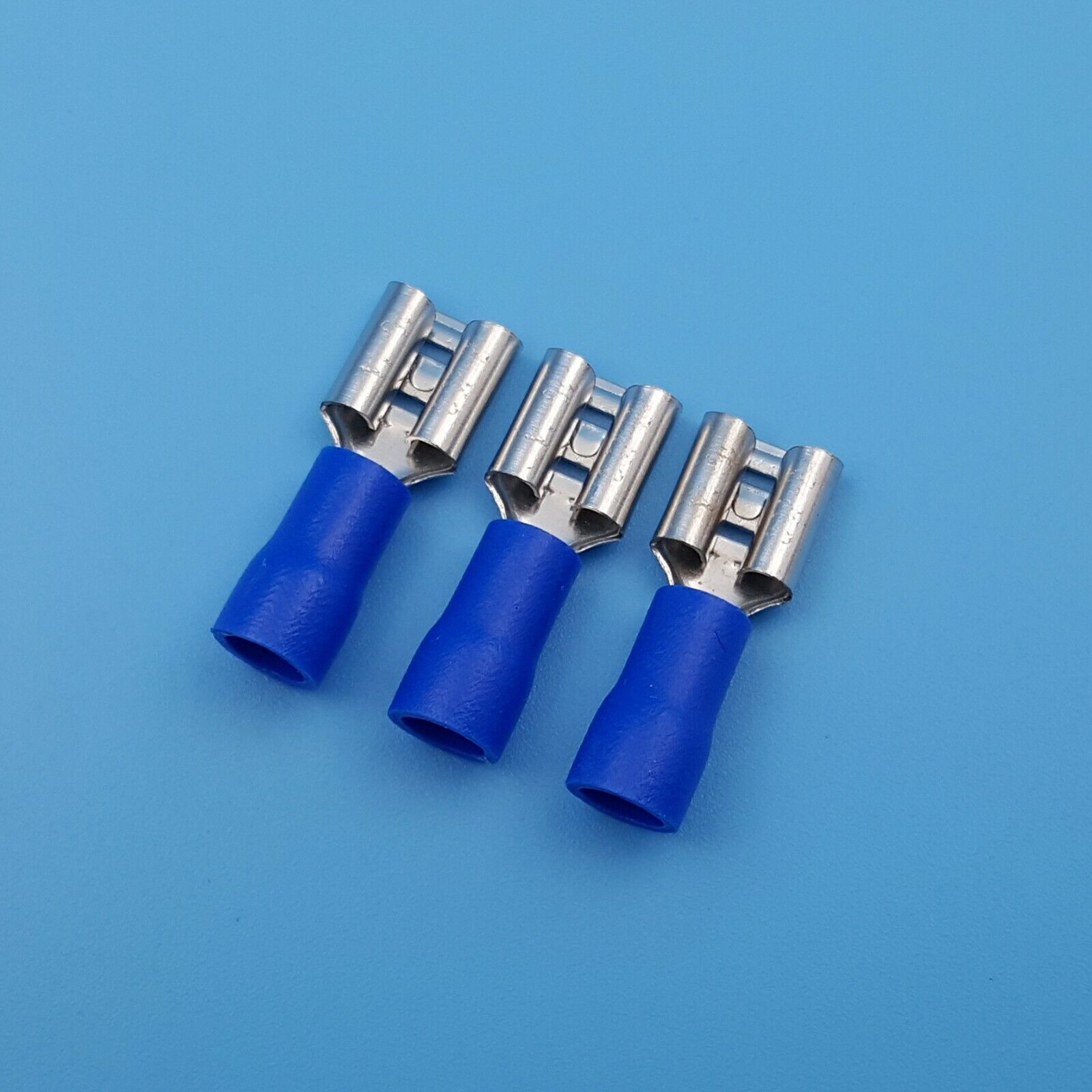 100Pcs Blue Female 6.3mm Spade Quick Disconnect 16-14 AWG Wire Crimp Terminals