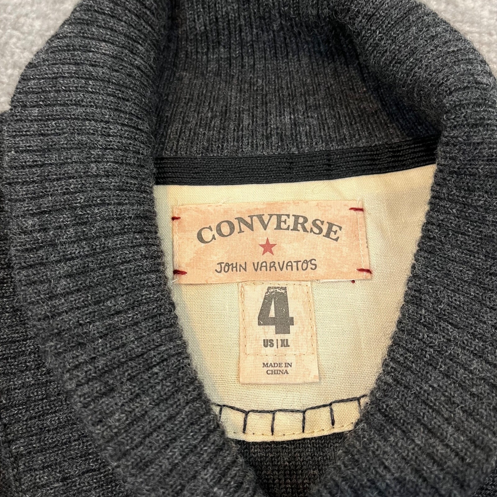 JOHN VARVATOS Sweater Mens XL Gray Striped Merino Wool Cowl Pullover Converse