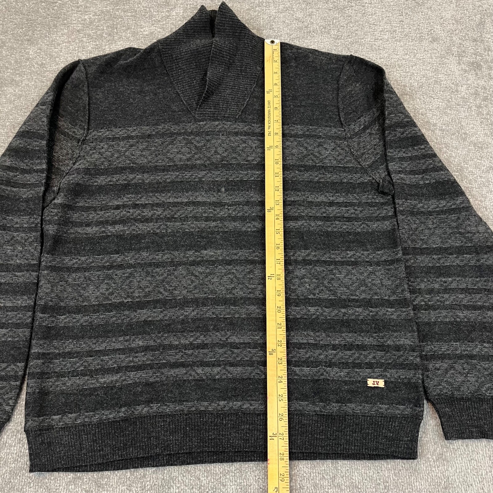 как выглядит JOHN VARVATOS Sweater Mens XL Gray Striped Merino Wool Cowl Pullover Converse фото