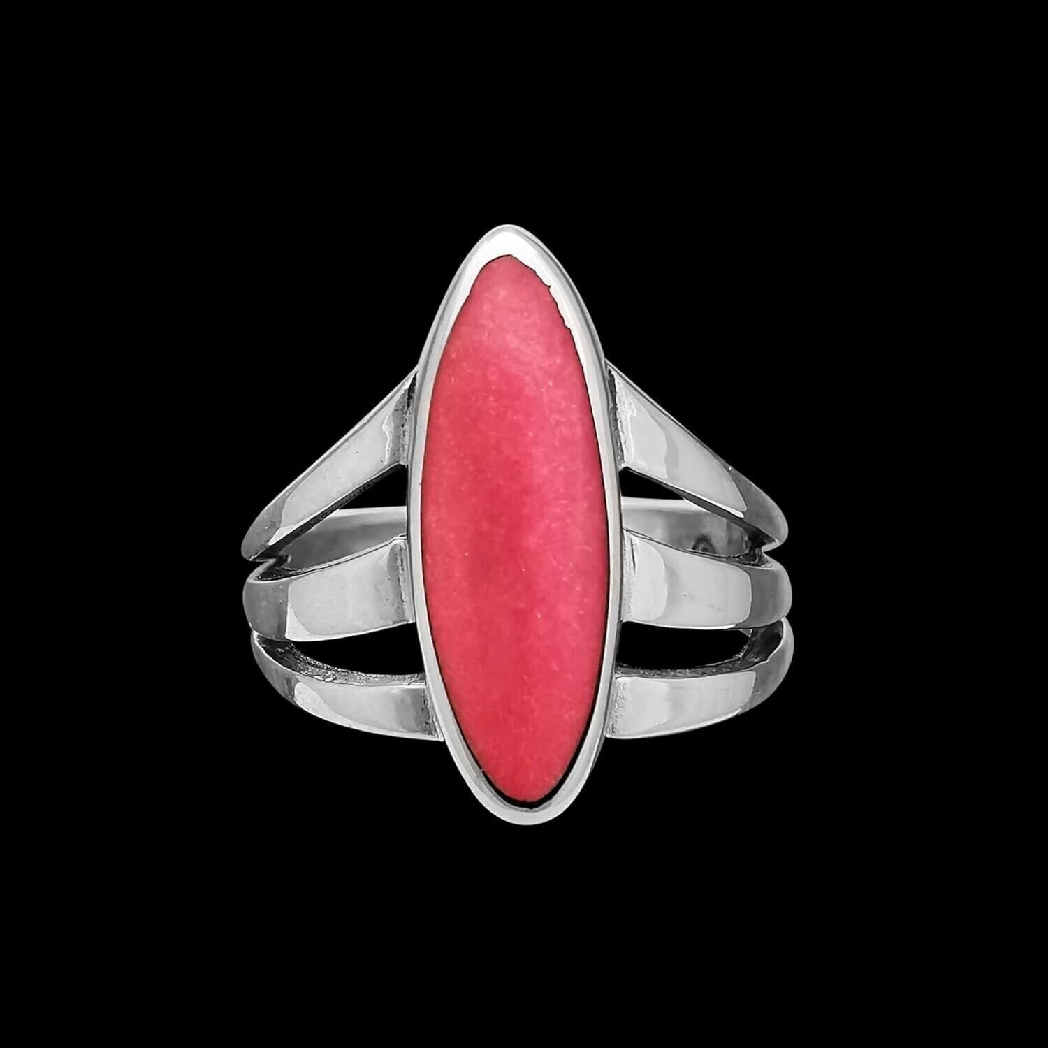Sterling Silver and Pink Resin Three Prong Oval Ring
