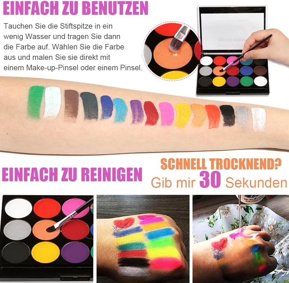 Face Paint Kit 15 Color Face Painting Palette with 2 Brushes Washable Face Paint