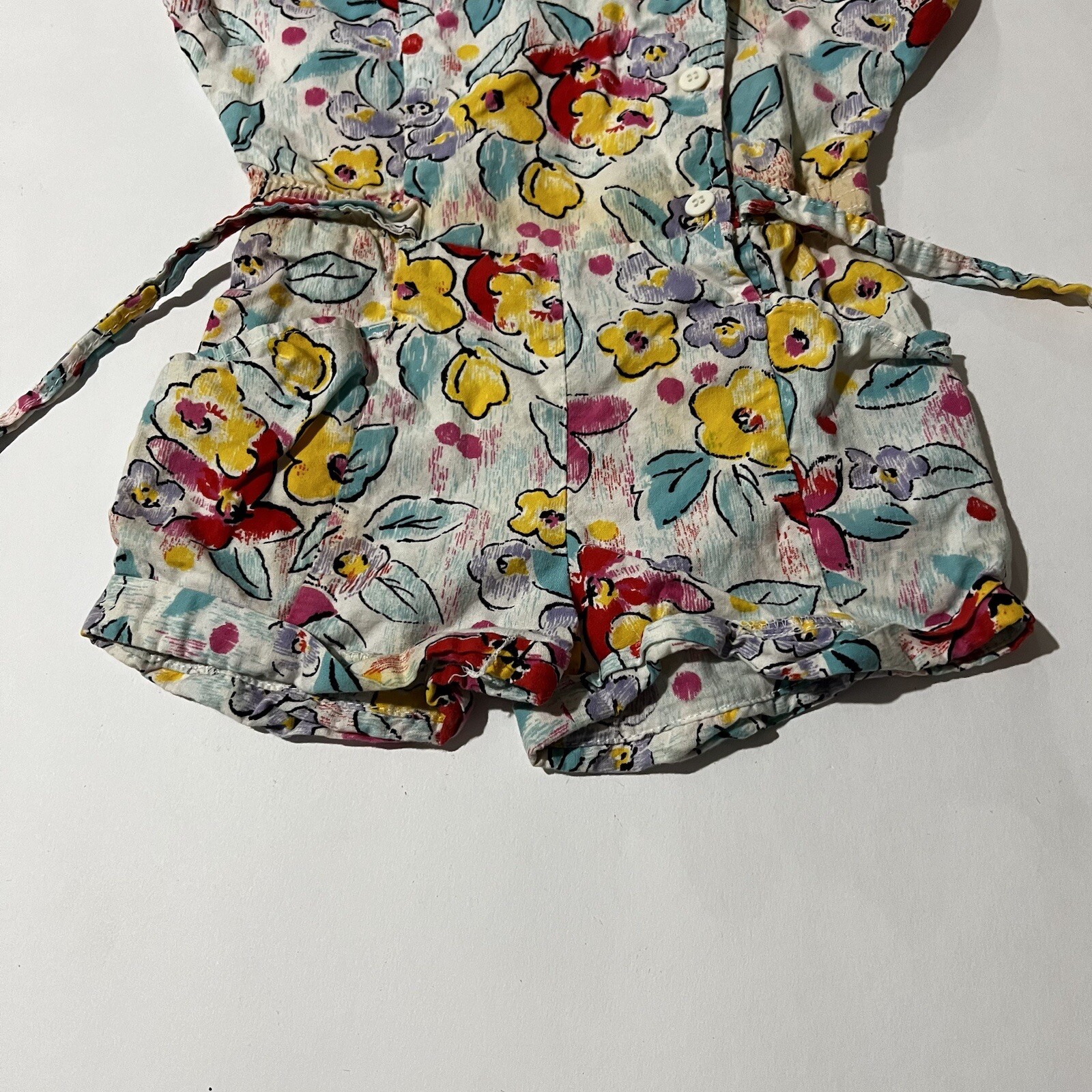 Naturally Sweet Toddler Floral 1 Piece Romper Pockets Buttons Tie Vintage