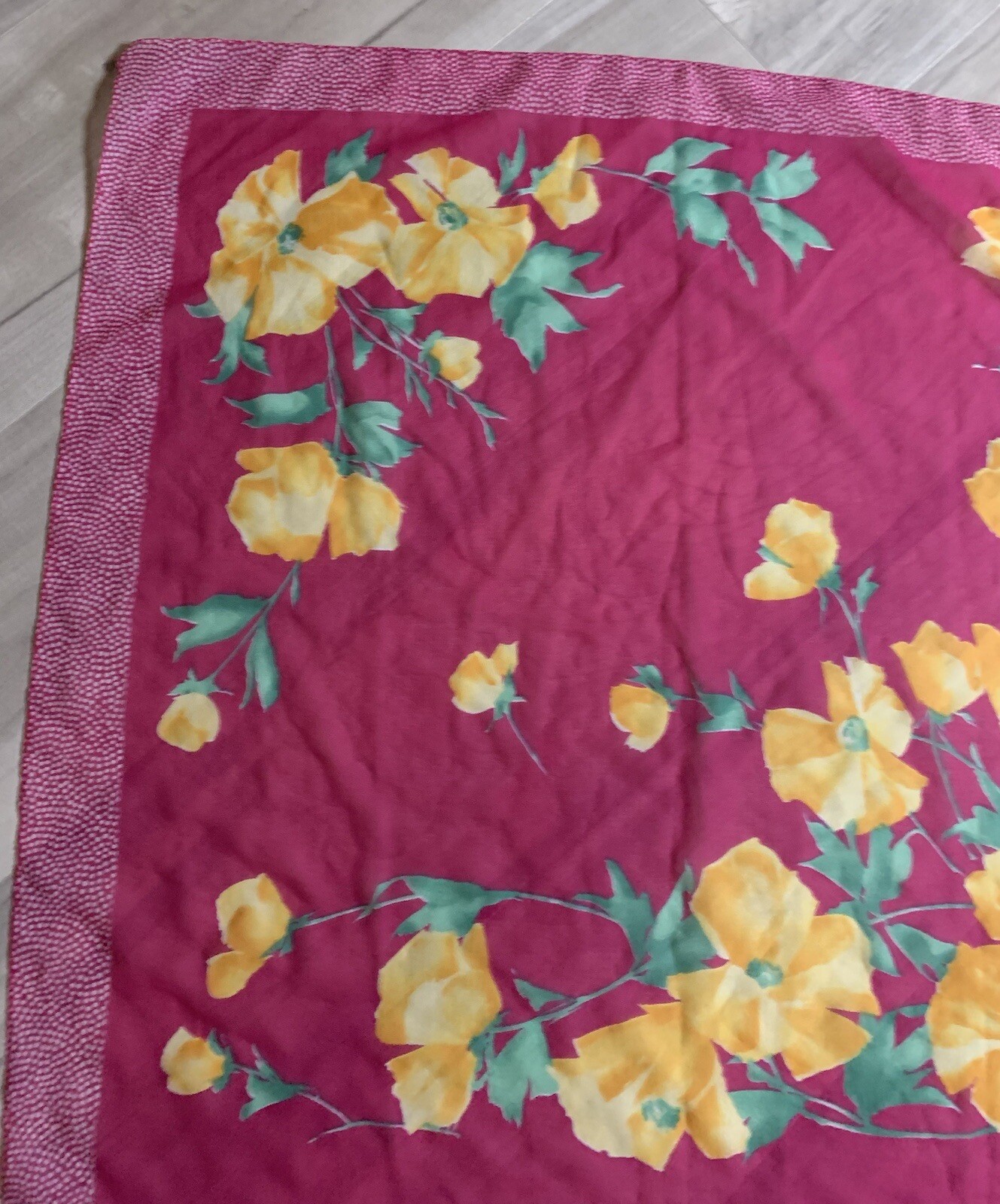 как выглядит Beautiful Pink Sheer Yellow Floral Scarf 30 Square фото