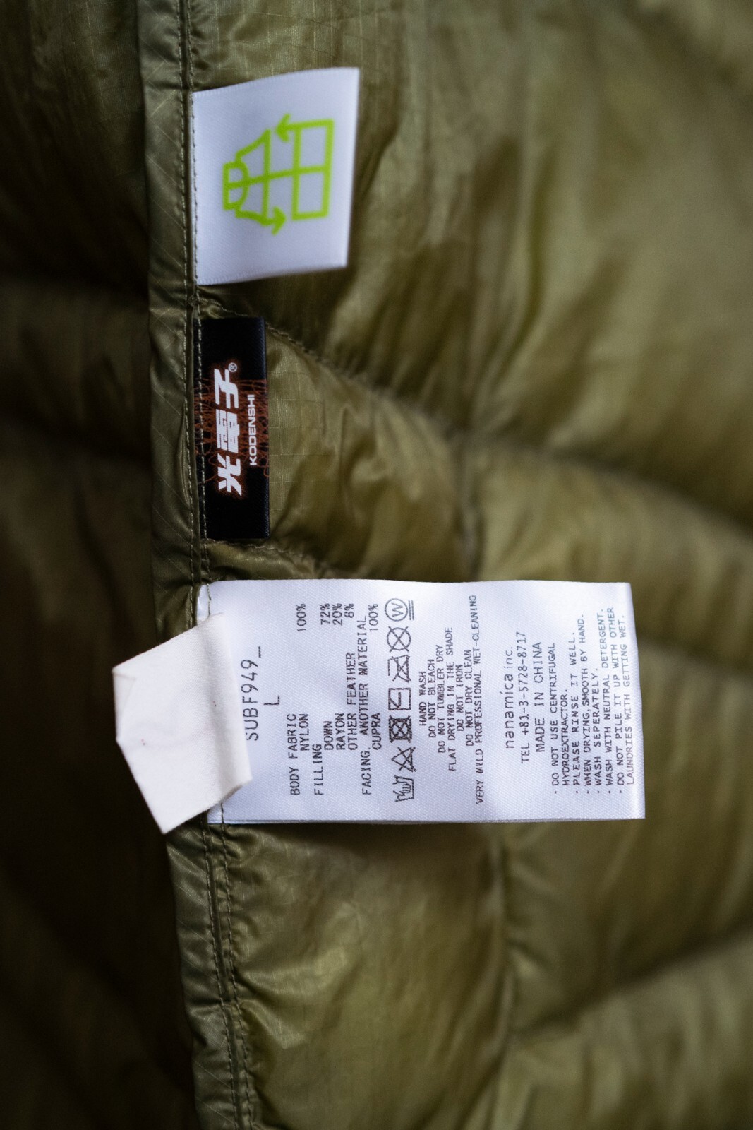 как выглядит Nanamica Puffer Coat Green L фото