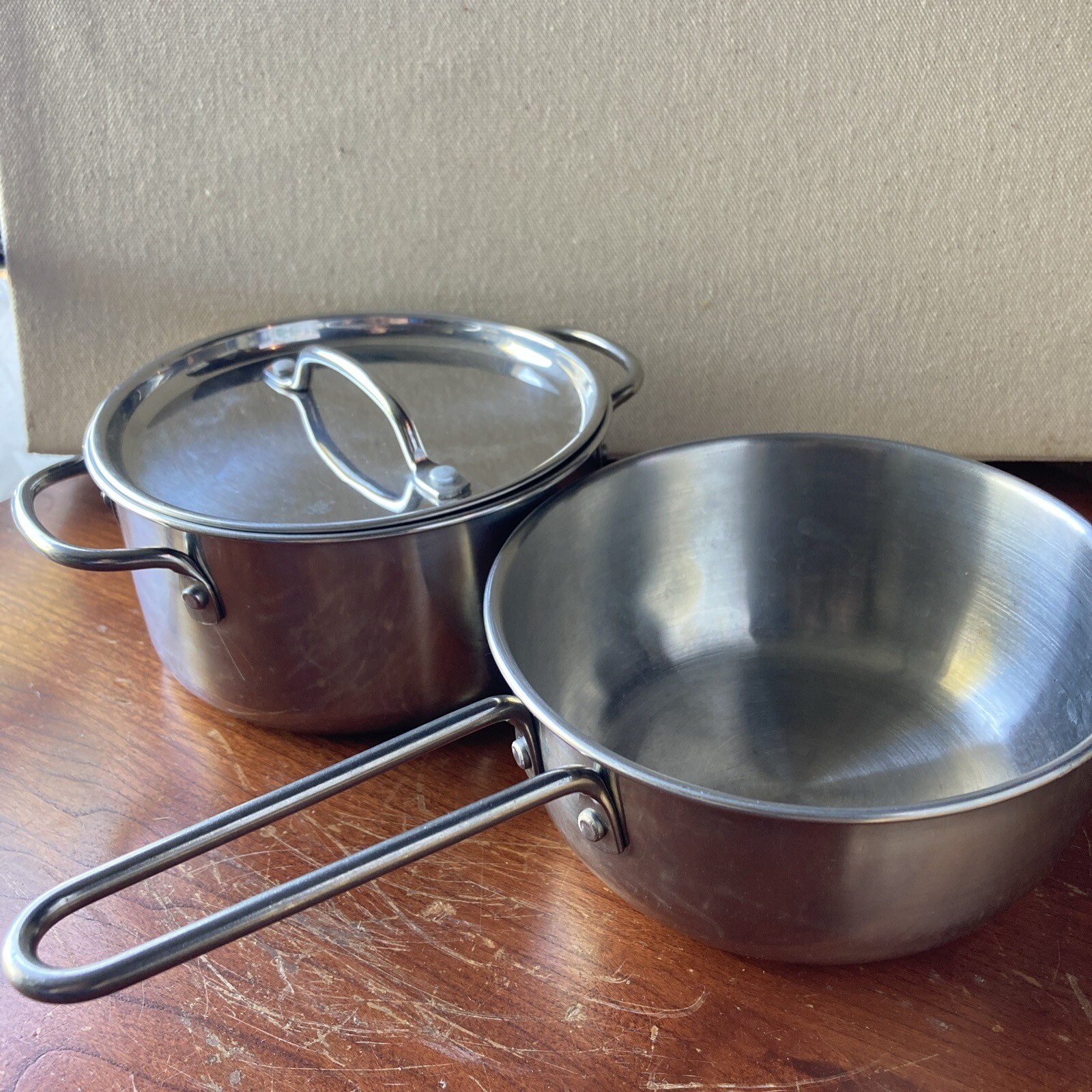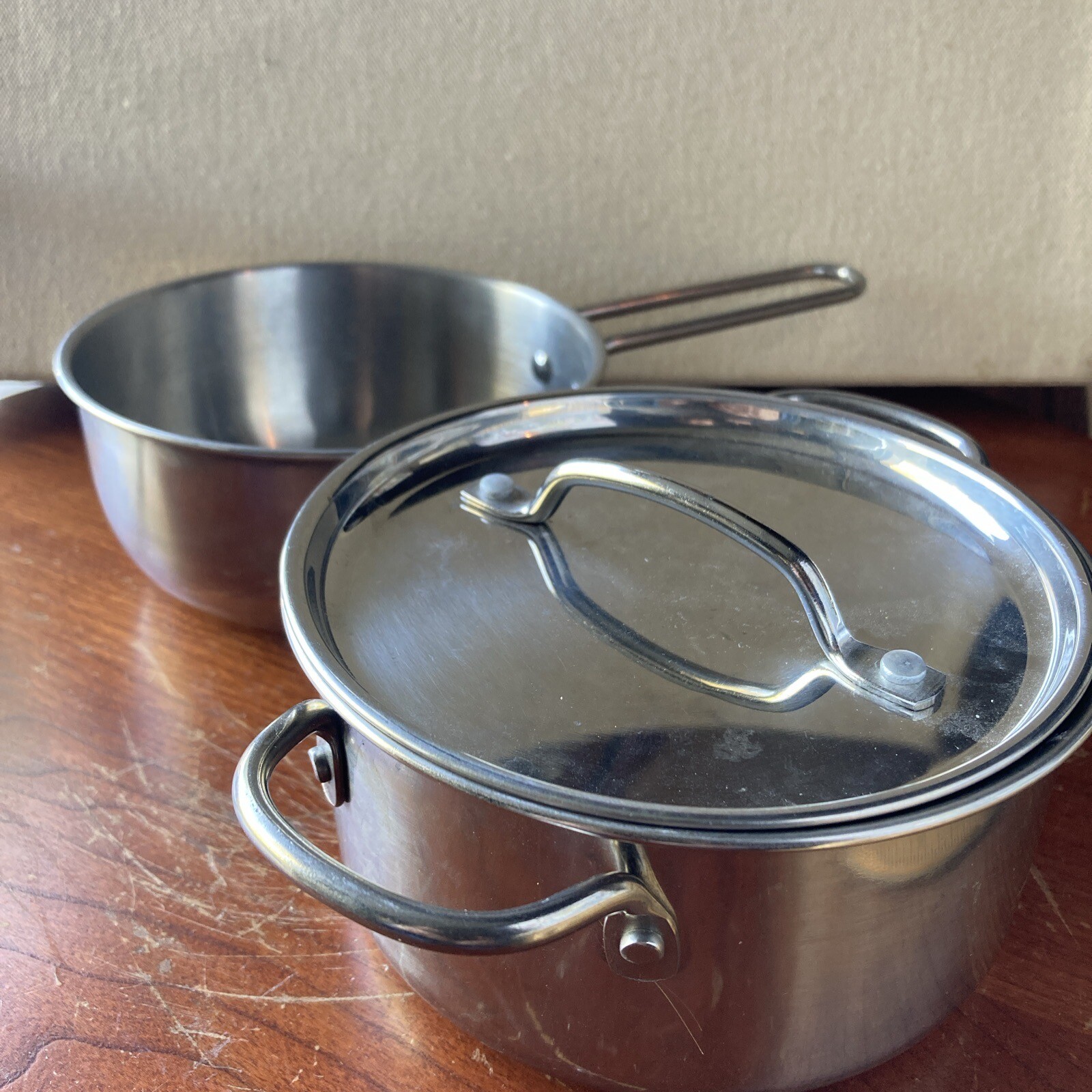 Melissa Doug 2 Pots 1 Top Fits 2 Silver Metal Kid s Pretend Play Toy Cooking