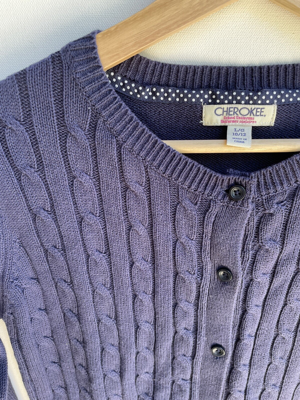 CHEROKEE - GIRLS NAVY BLUE CABLE KNIT L/S UNIFORM SCHOOL SWEATER SIZE 10/12 NWT