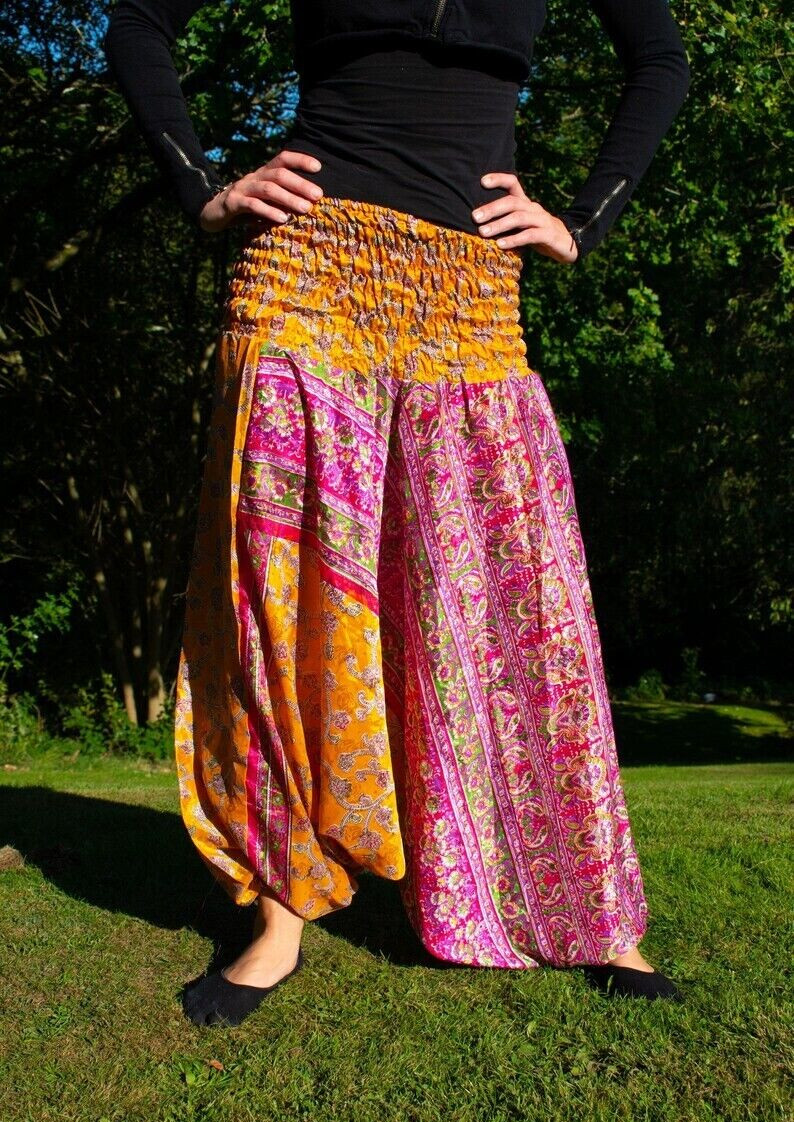 5 Pcs of Indian Vintage Silk Sari Boho Harem Trousers Women Gypsy Yoga Pants