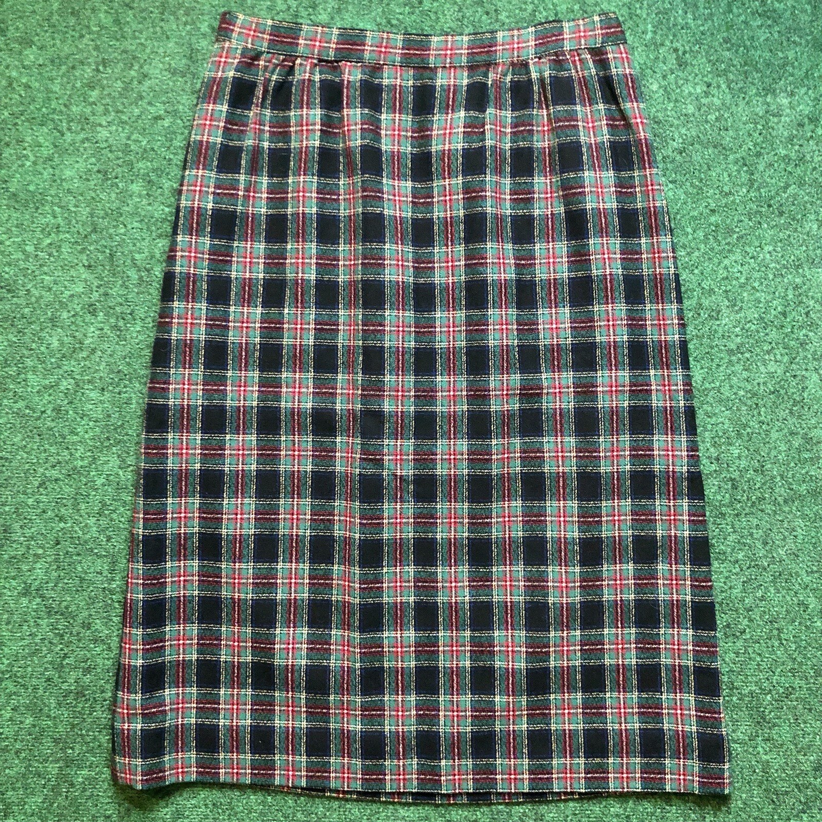 Vintage Pendleton 100 Virgin Wool Skirt Sz 12 Tartan Plaid Green Black Red