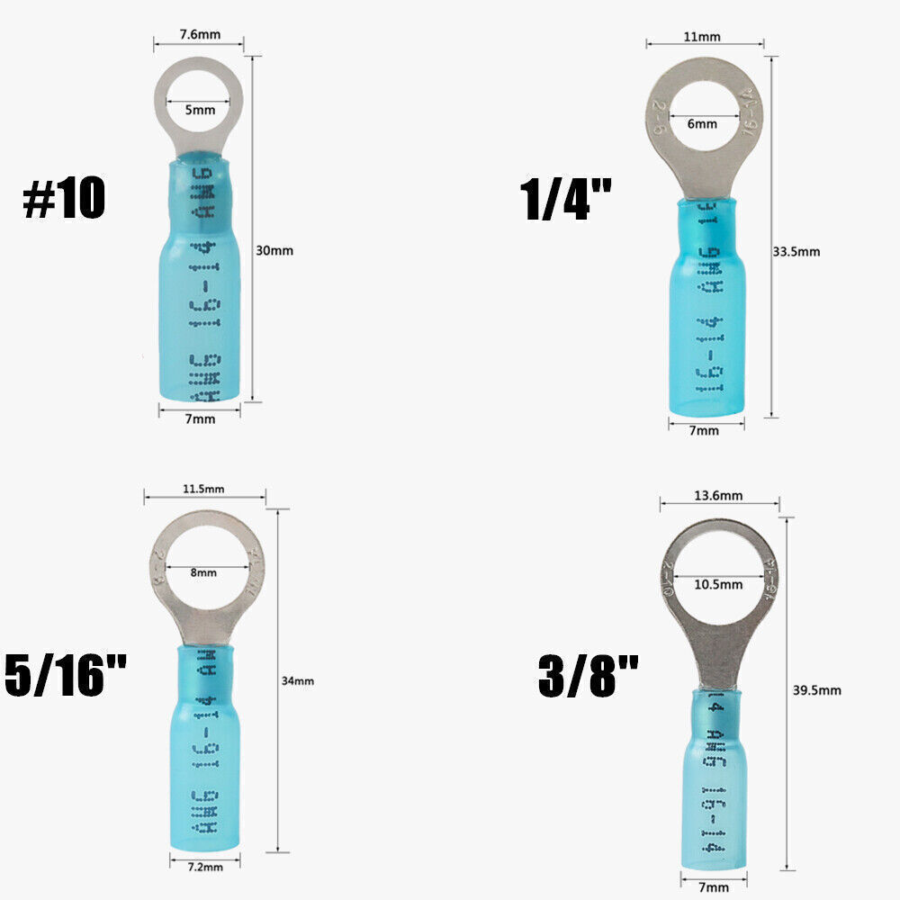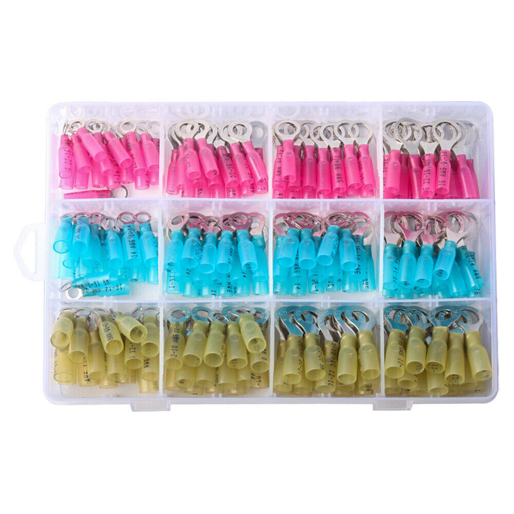 180Pcs Heat Shrink Wire Crimp Connectors Ring Terminals AWG 22-10 Waterproof