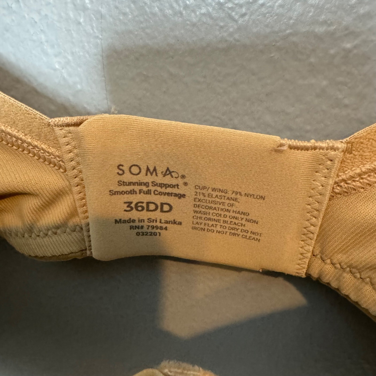 SOMA stunning support smooth full coverage bra in nude size 36DD Womens