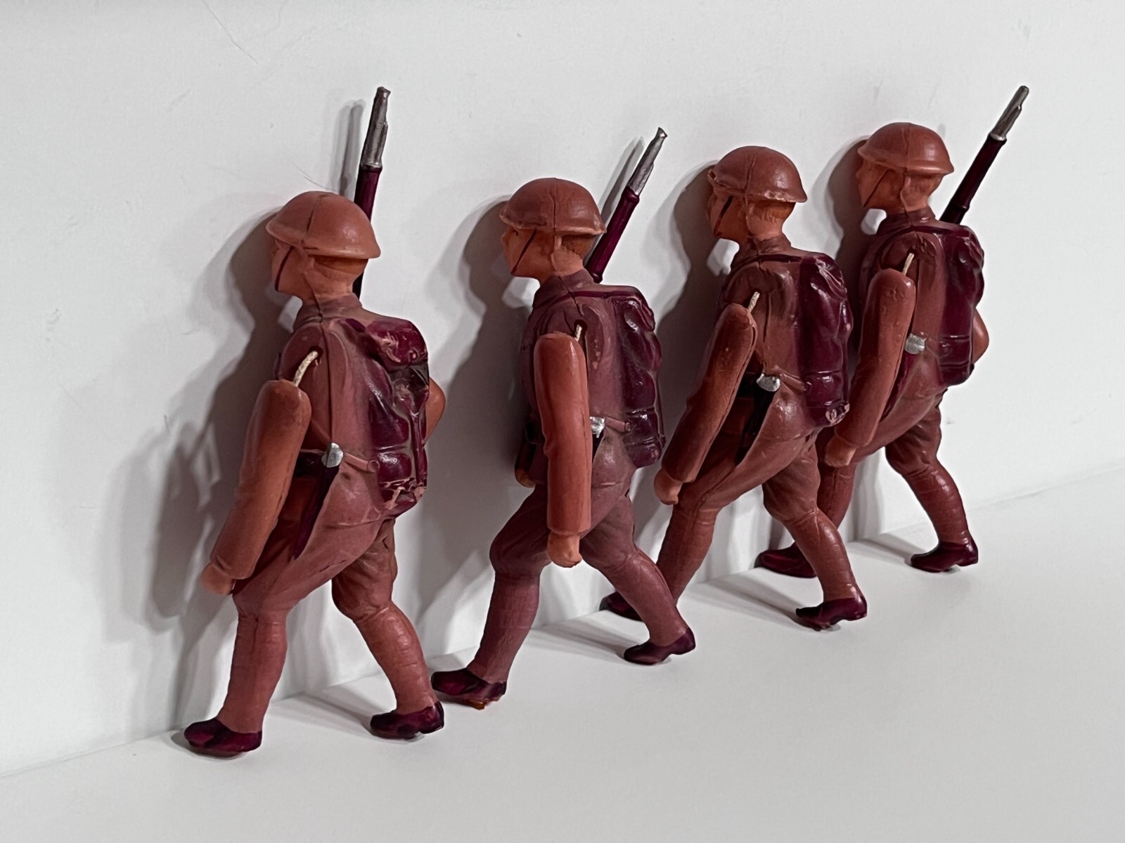 Vintage Set of 4 Celluloid Army/Military Toy Soldiers With Rifles, Moveable Arms