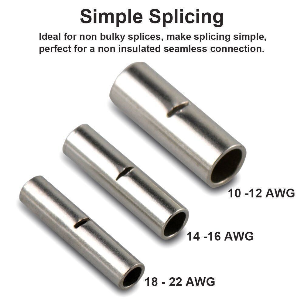 100PCS Non-Insulated Bare Copper Butt Connectors Splice Crimp Wire Terminals