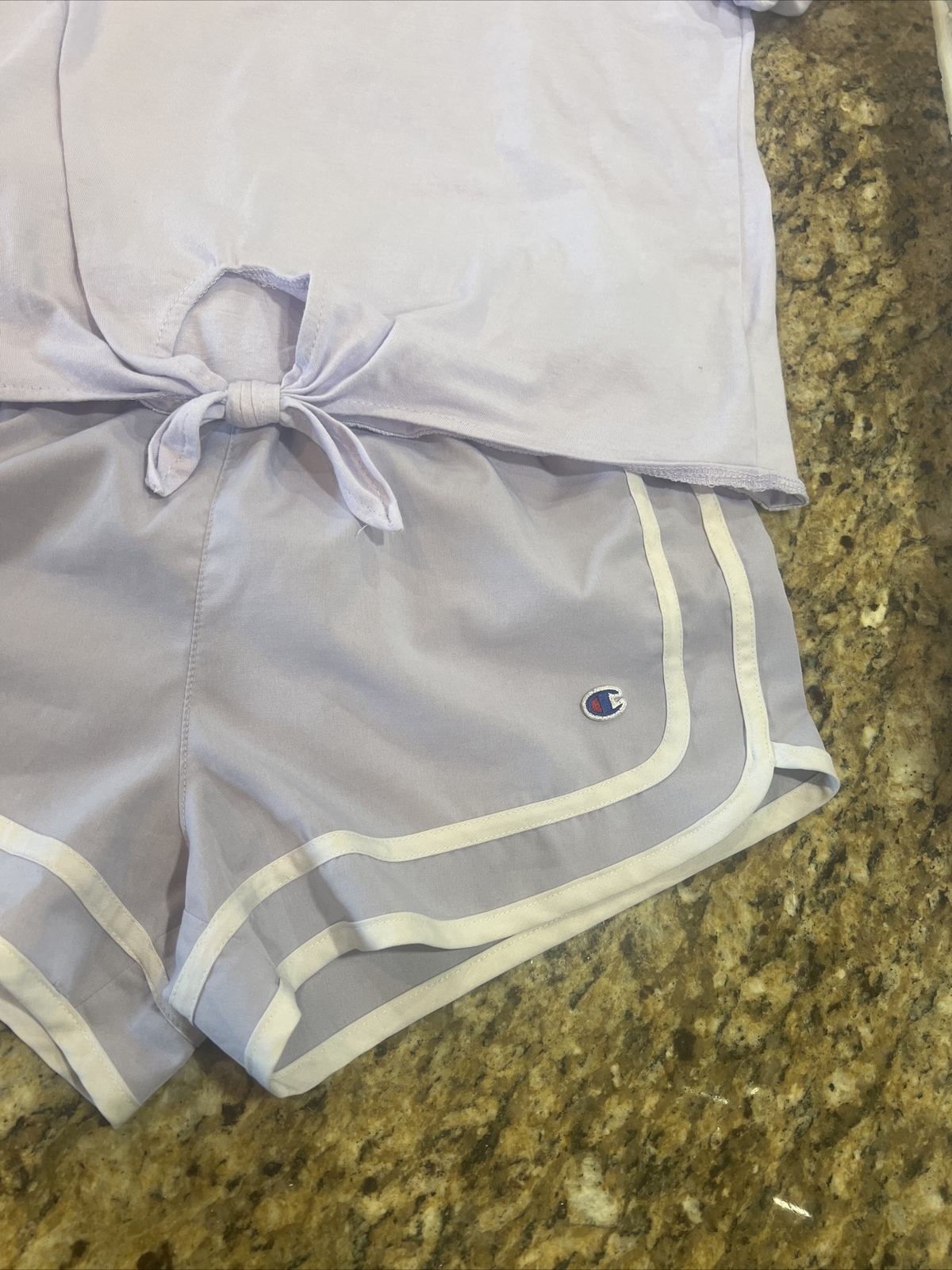 как выглядит girls champion youth large purple Shorts And Shirt Set фото