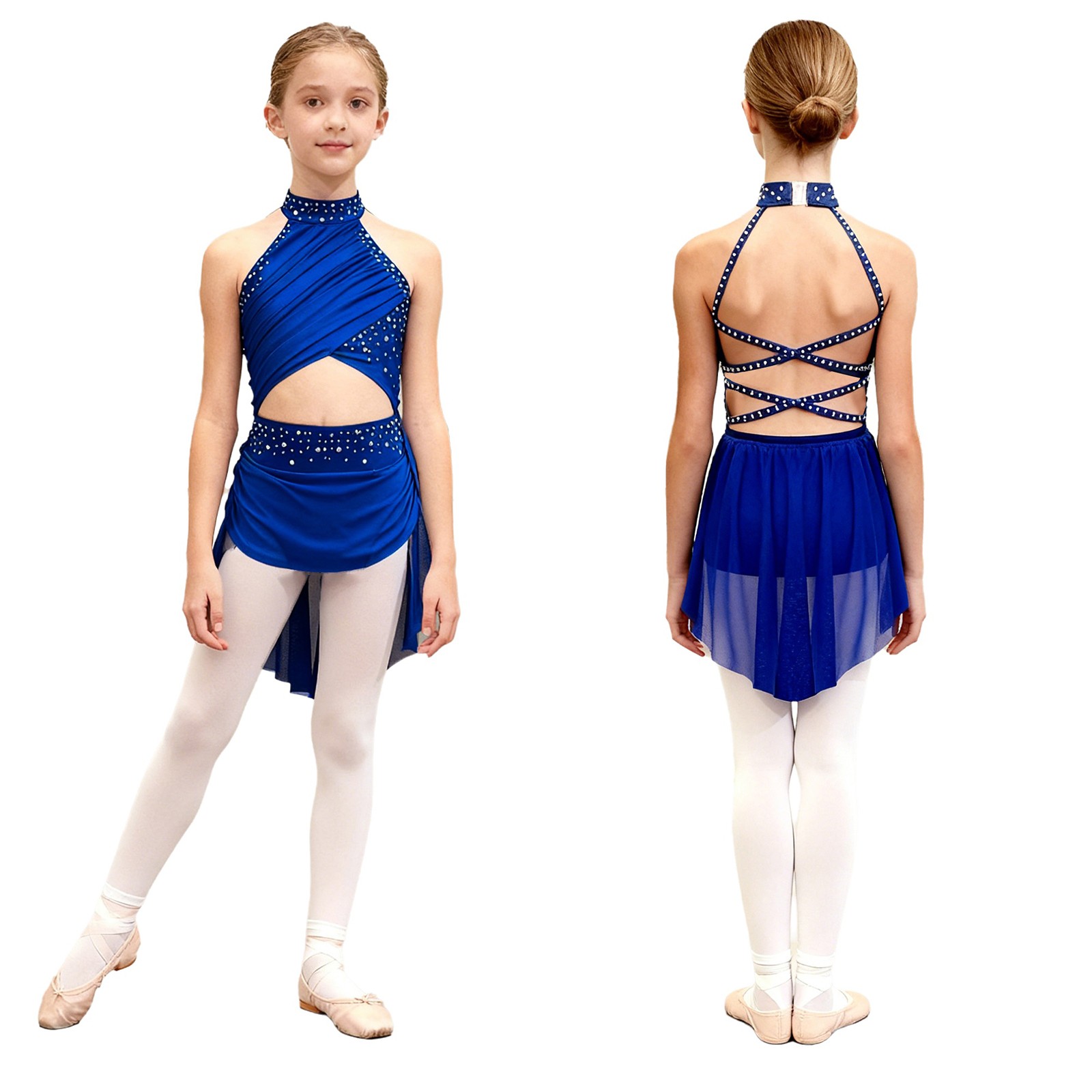 Kids Dress Rhinestone Dance School Leotard Practice Lyrical Modern Costume Mesh