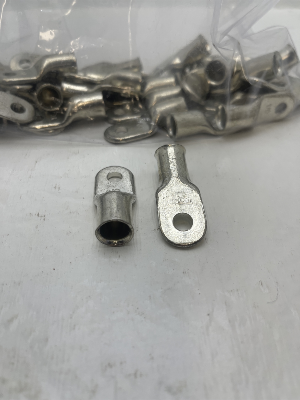 как выглядит Qty. 37 1/0 1/4" Hole Ring Terminal Lug Tin Plated Copper Uninsulated AWG Gauge фото