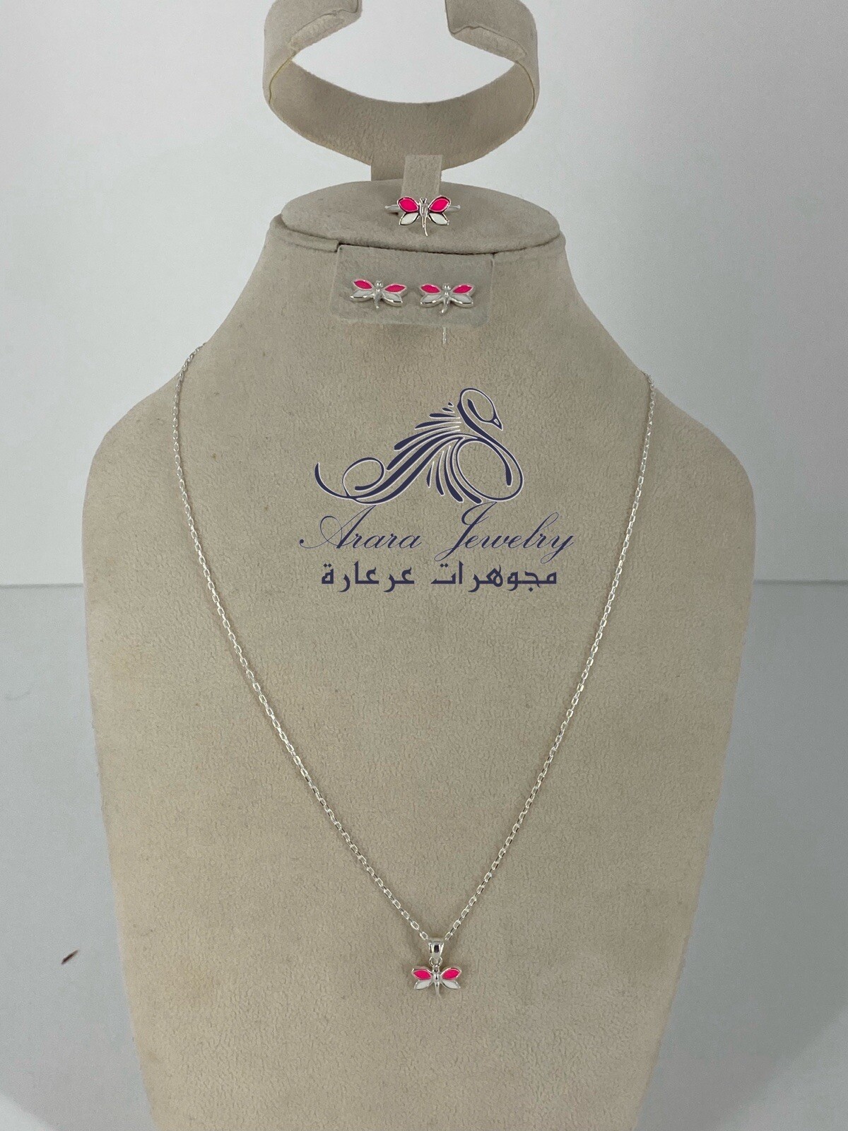 Beautiful pink Butterfly Jewelry Set for Girls Necklace, Ring, Earrings in Ste