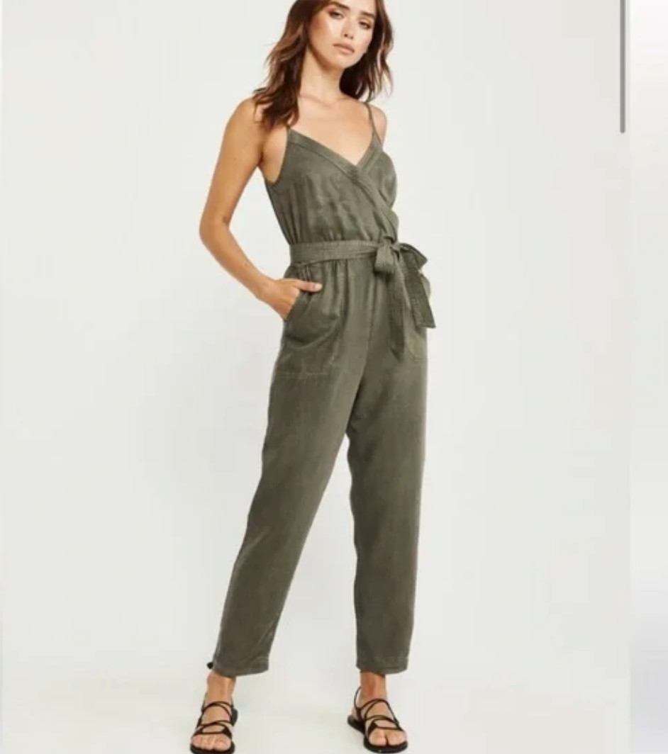 Abercrombie Fitch Womens sz XS Tank Wrap Front Green Belted Utility Jumpsuit