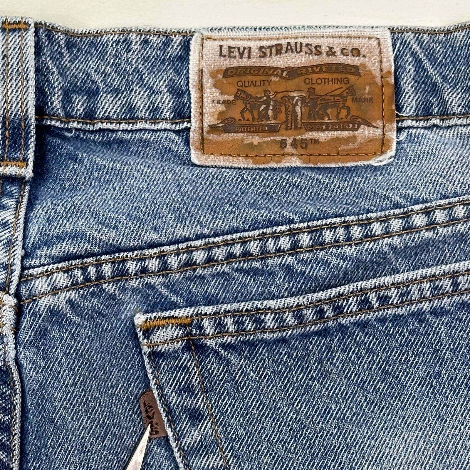 как выглядит VTG Levis 545 Blue Jeans Men Actual 42x34 Light Wash Loose Brown Tab made USA фото