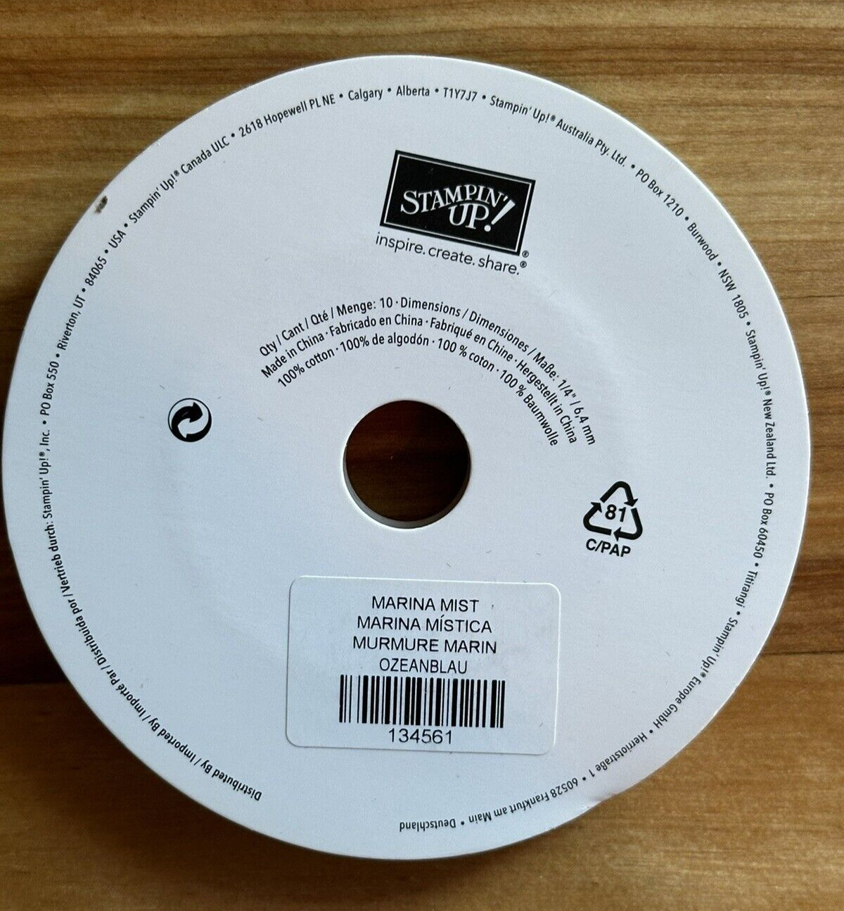 Stampin Up Retired MARINA MIST Cotton Ribbon - 1/4 - 10 yards NEW