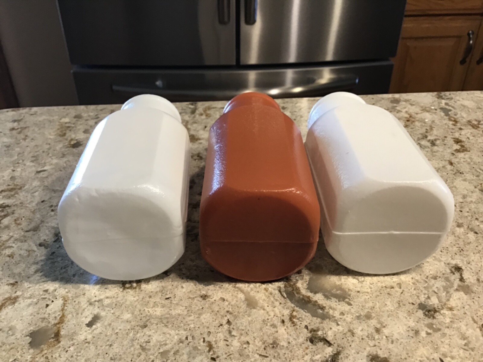 как выглядит Vintage Pretend Play Food 5" Plastic White and Chocolate Milk Bottle Jugs - Rare фото