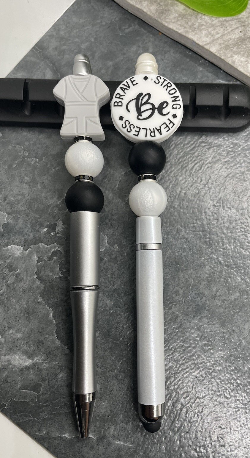 2 PC Handmade Silicone Bead Black Ink Pen Stylus Set New Nurse Scrub B1584