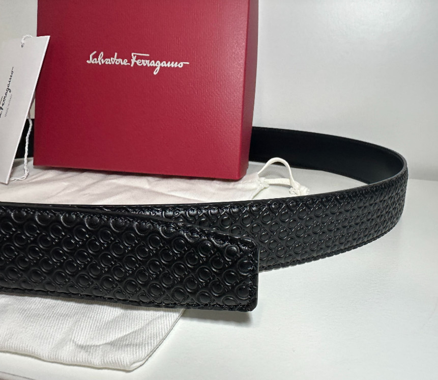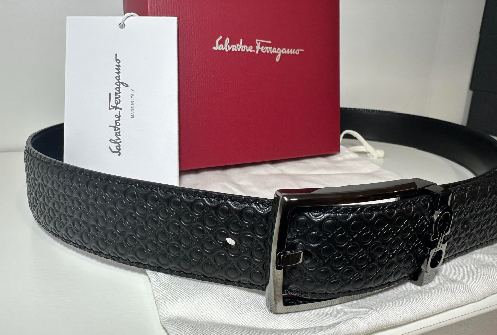 как выглядит ADJUSTABLE REVERSIBLE BLACK LEATHER SALVATORE FERRAGAMO BELT GUNMETAL BUCKLE фото